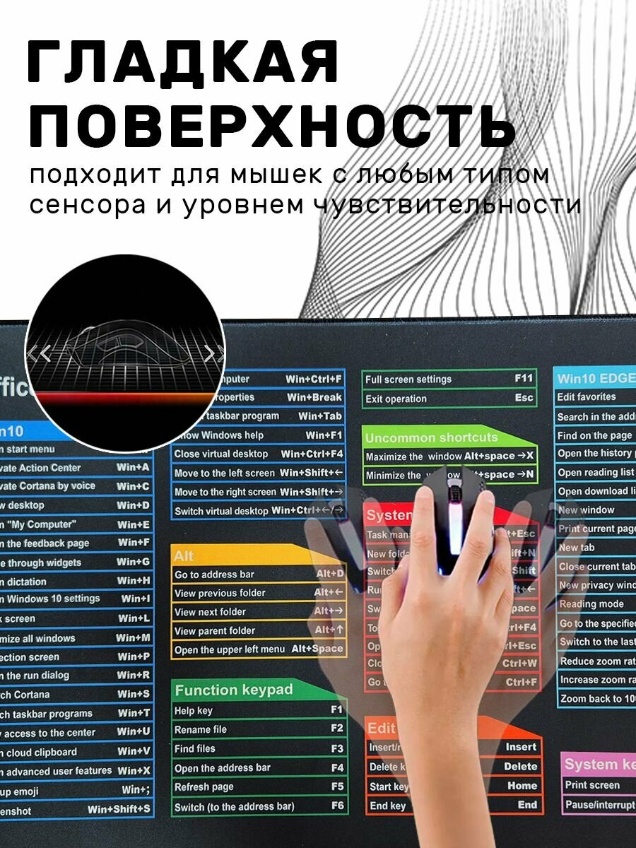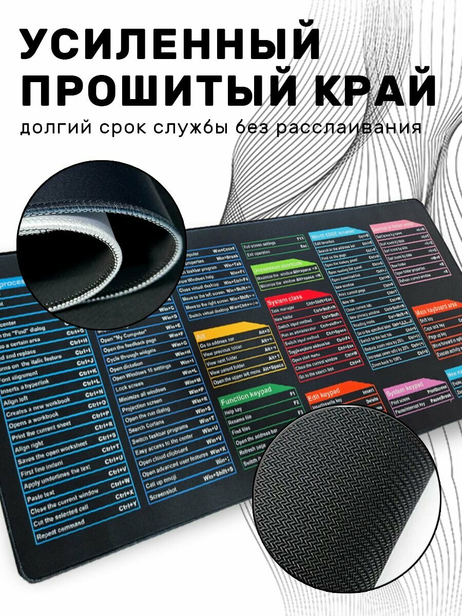 Большой игровой коврик для мышки и клавиатуры 90х40 см, горячие клавиши без линейки, быстрые команды Excel, PhotoShop, Windows