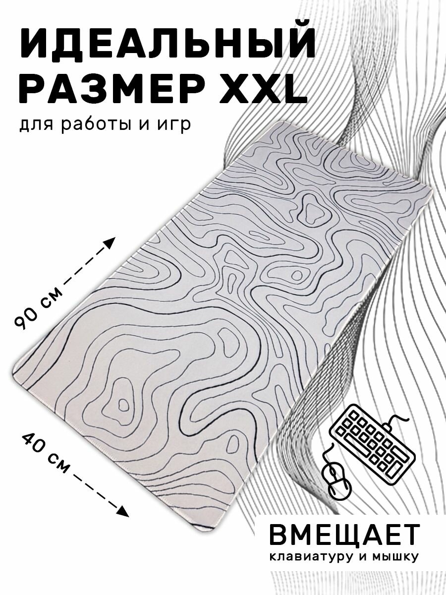 СохранитьБольшой игровой коврик в японском стиле для мышки и клавиатуры 90х40 см, белая абстракция интересное: