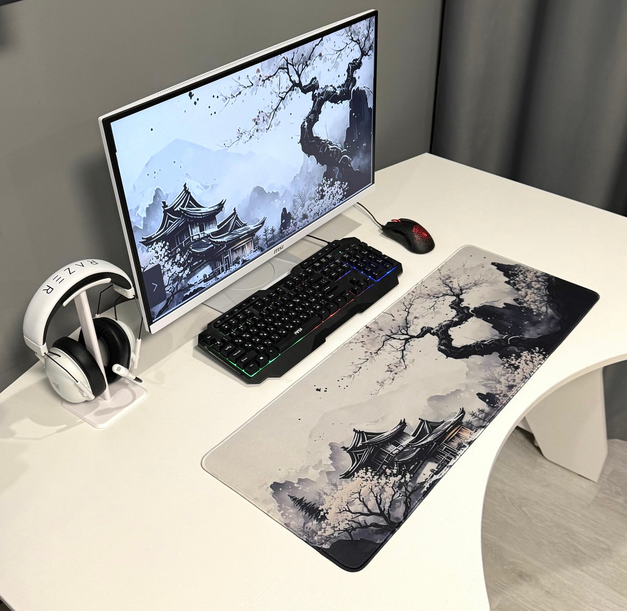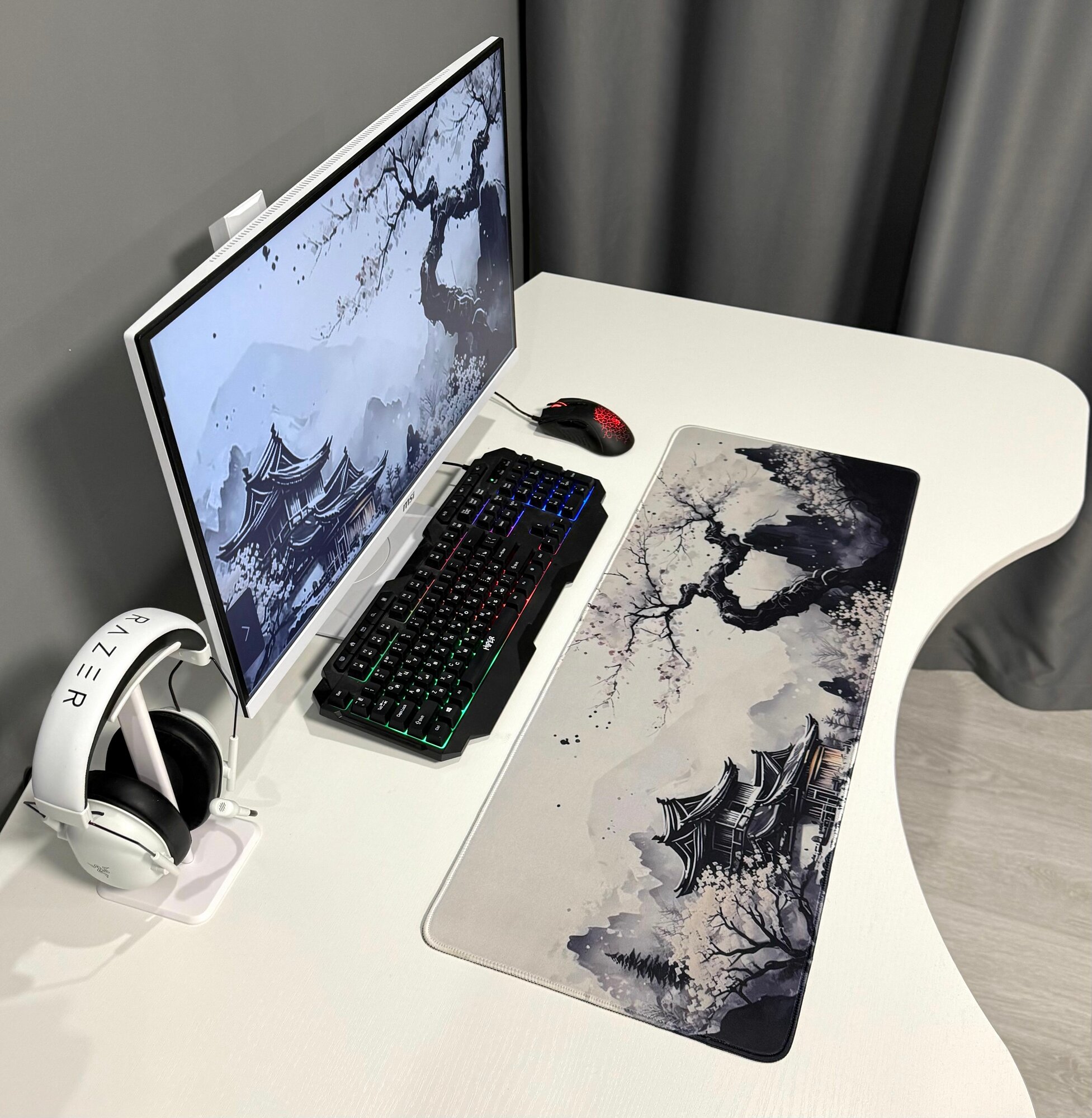 СохранитьБольшой игровой коврик в японском стиле для мышки и клавиатуры 80х30 см, японский пейзаж и сакура интересное: