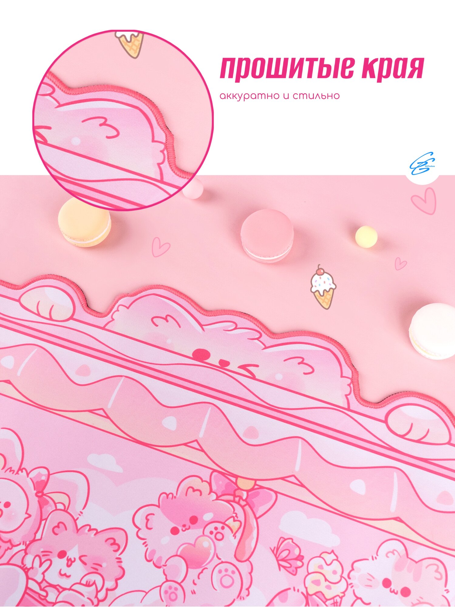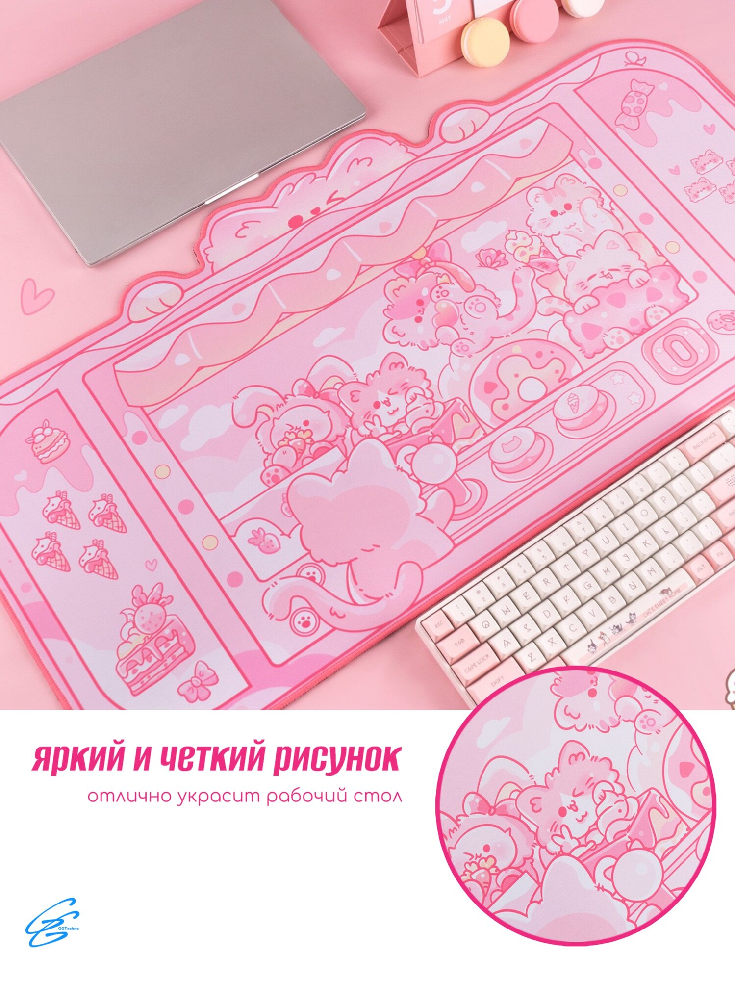 Коврик для мыши GGTechno "Милый", XL, игровой, аниме-дизайн, розовый