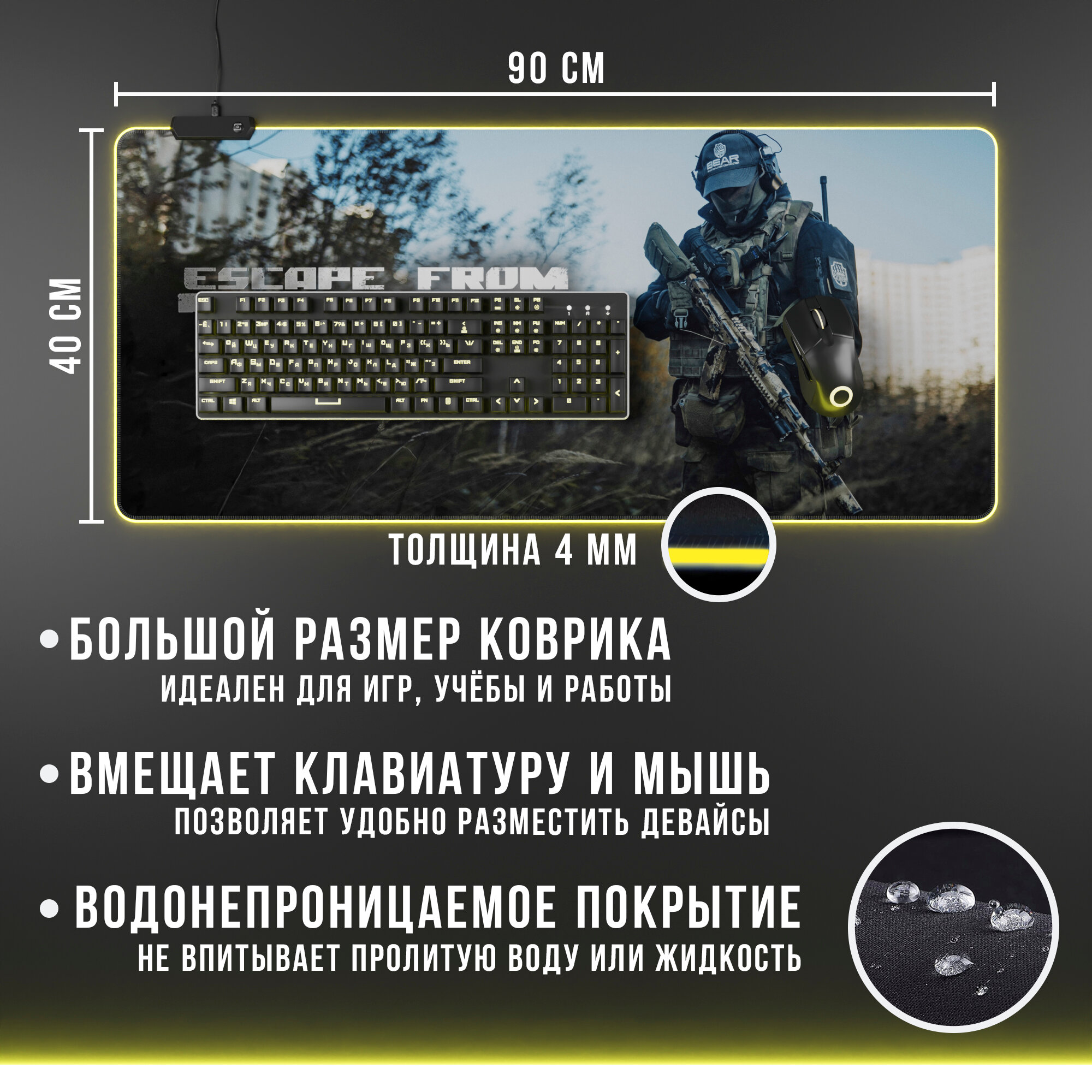 Игровой коврик RGB Escape from Tarkov, с подсветкой, 900х400 мм