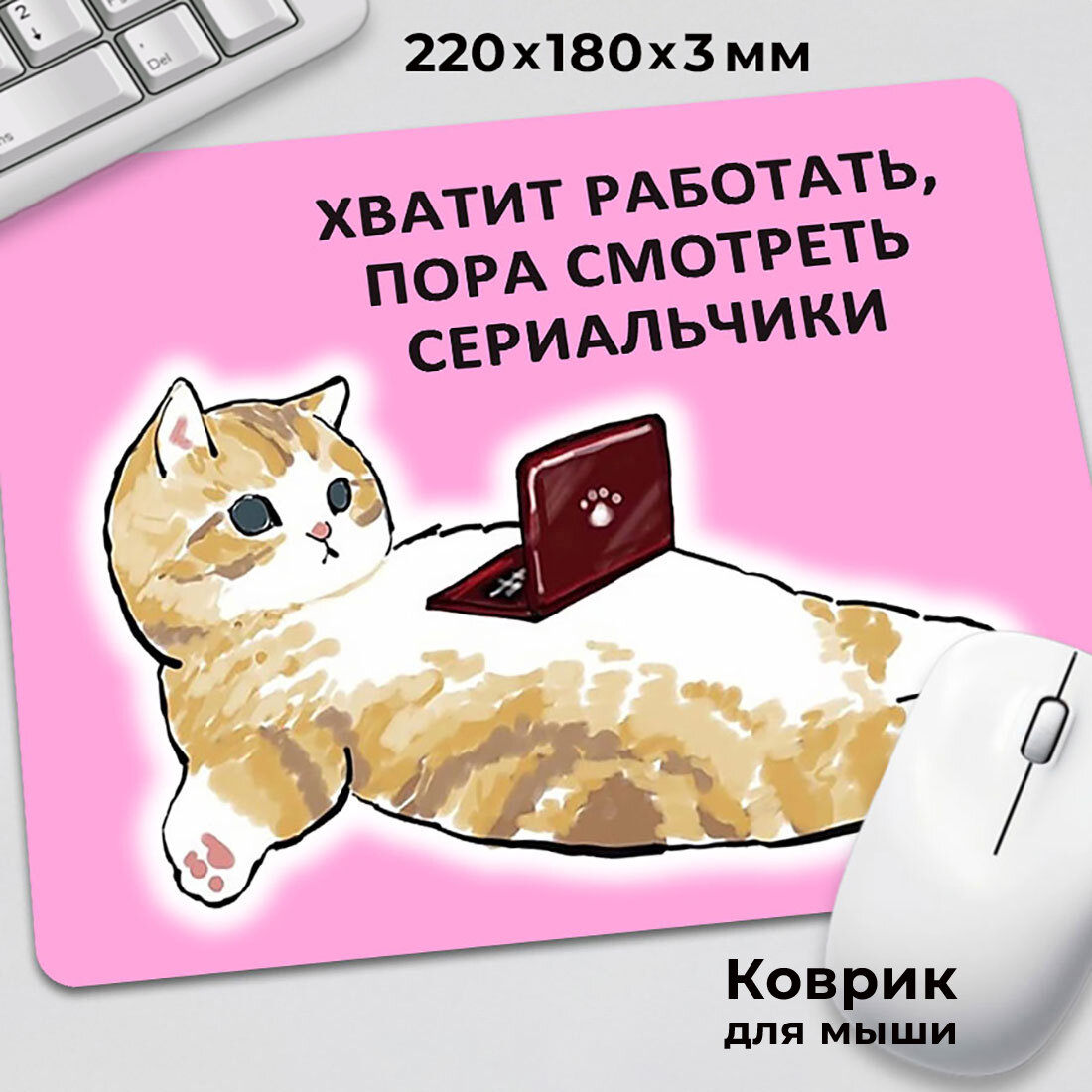 Коврик для мышки прикол мем милый котик Хватит работать интересное: