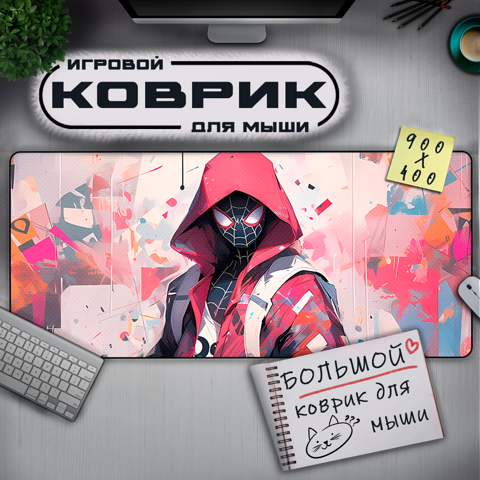 Коврик для мыши "Ultimate Spider-Man", 900 x 400 мм, игровой, прошитые края, черный интересное: