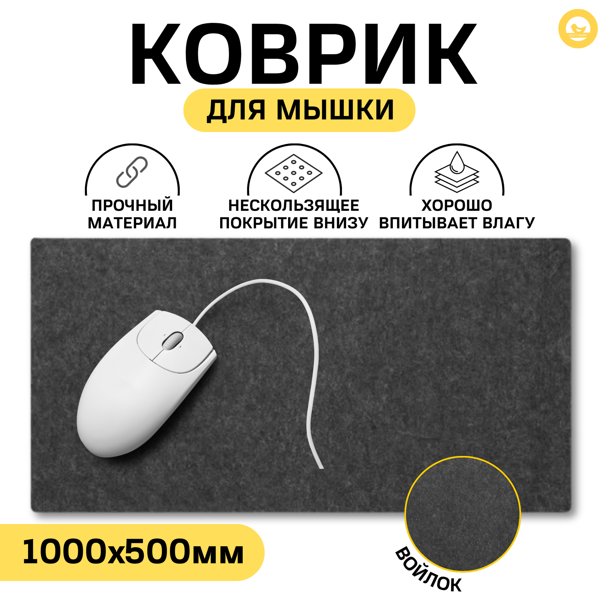 Купить Коврик для мыши, войлок, 100 см x 50 см, противоскользящий, черный