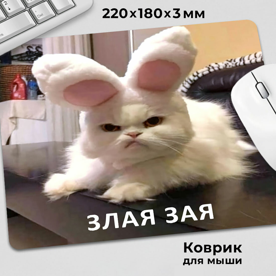 Коврик для мышки с приколом мем котик с ушками Злая зая интересное: