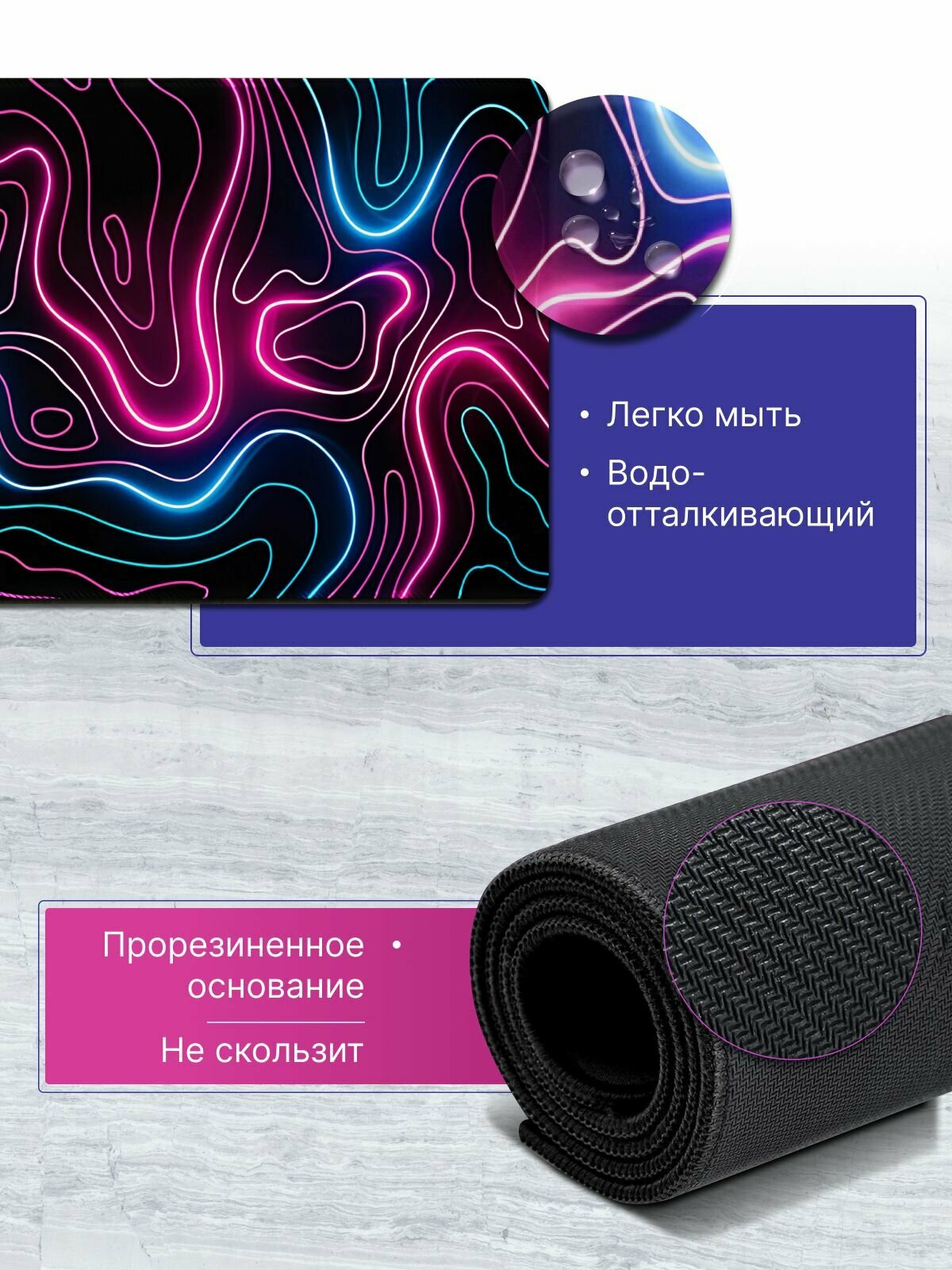 Коврик для мышки MBF1 большой игровой компьютерный ноутбука клавиатуры неоновый 800х300 толщина 3 мм интересное: