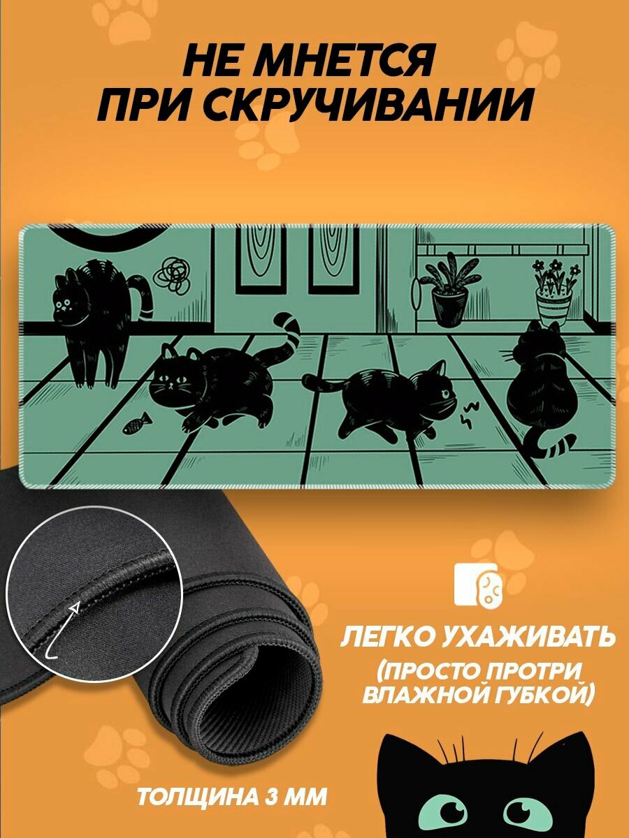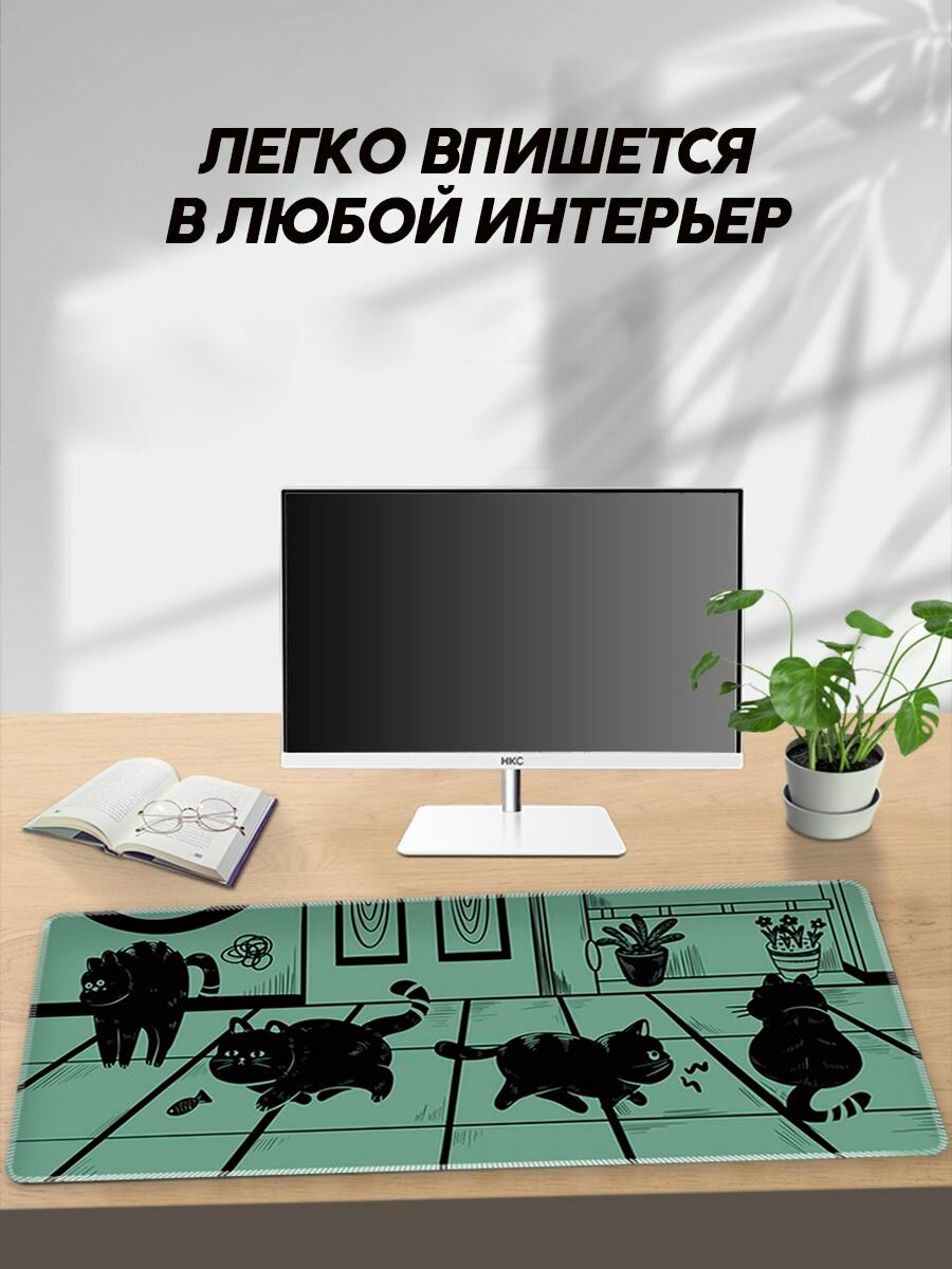 Игровой коврик для мыши Пк и ноутбука большой Котики зеленый интересное: