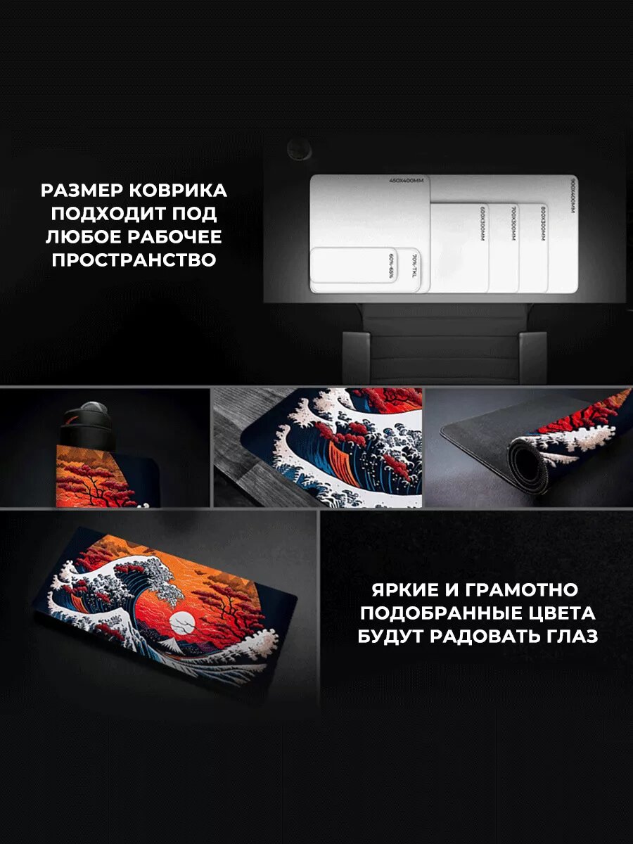 Игровой коврик для мыши принт Great Wave Kanagawa 90x40 см интересное: