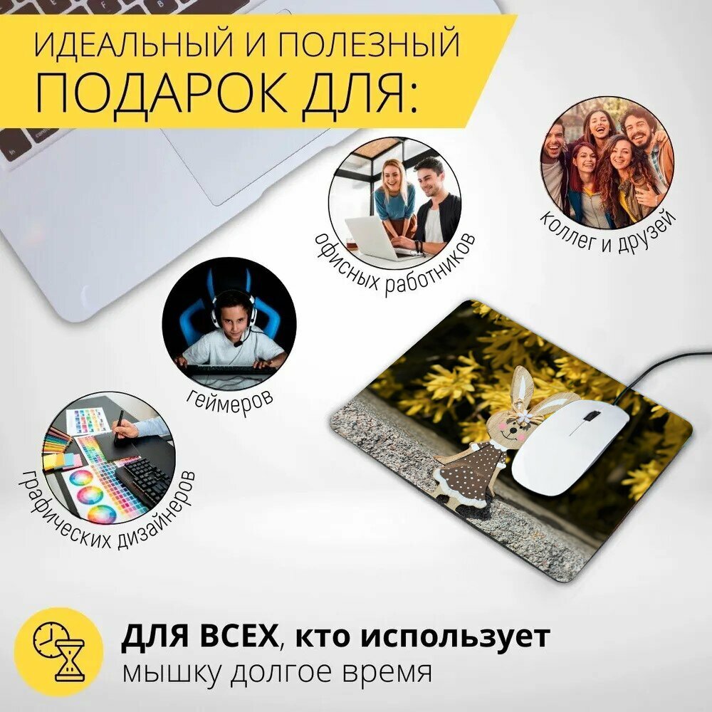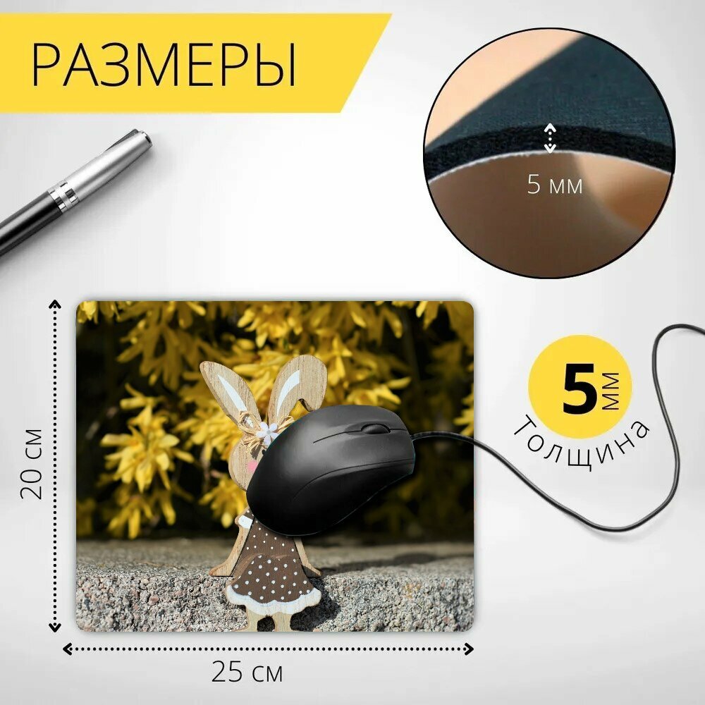 Коврик для мыши с принтом "Заяц, пасхальный, игрушки" 25x20см. интересное: