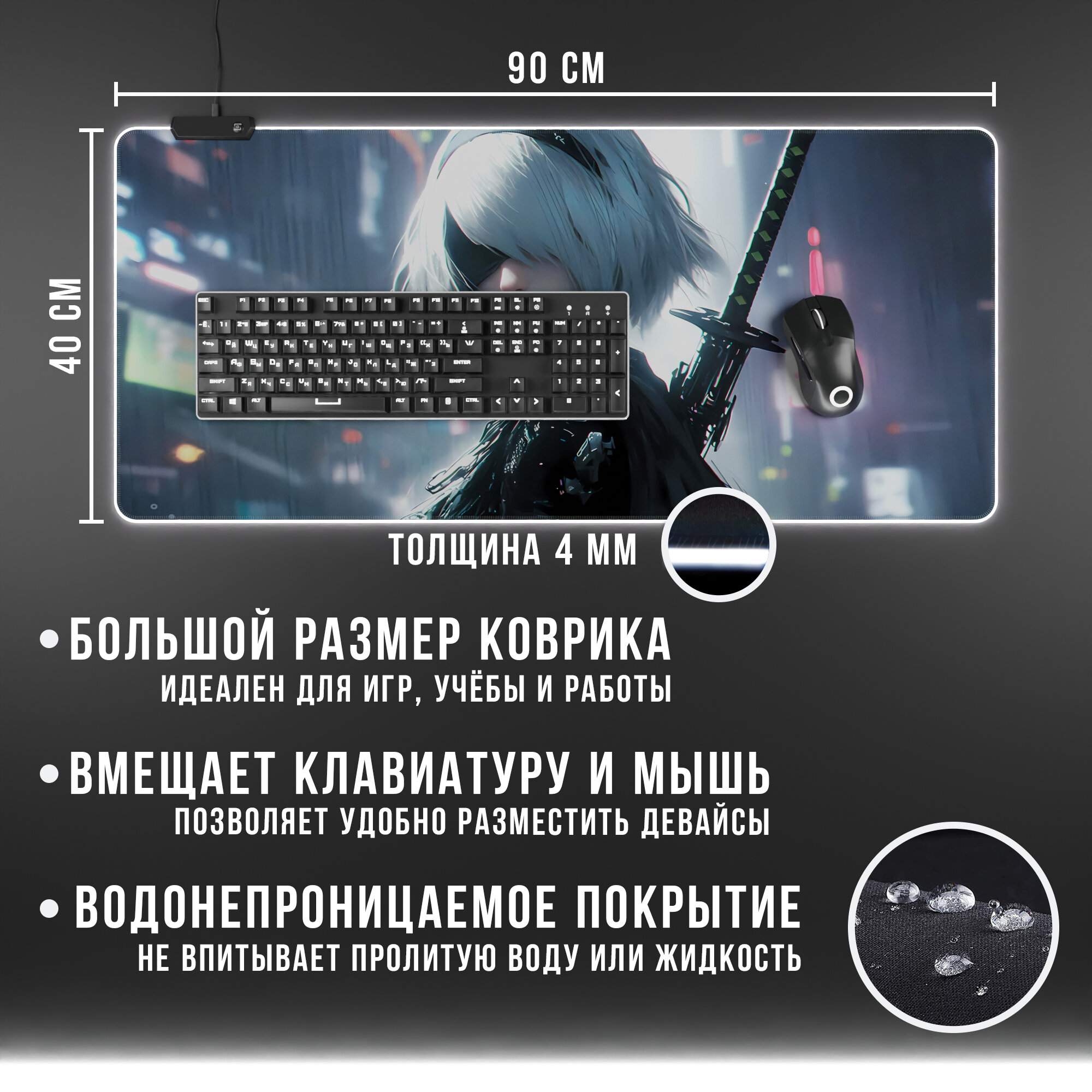 Игровой коврик для мыши Nier Automata с RGB подсветкой интересное: