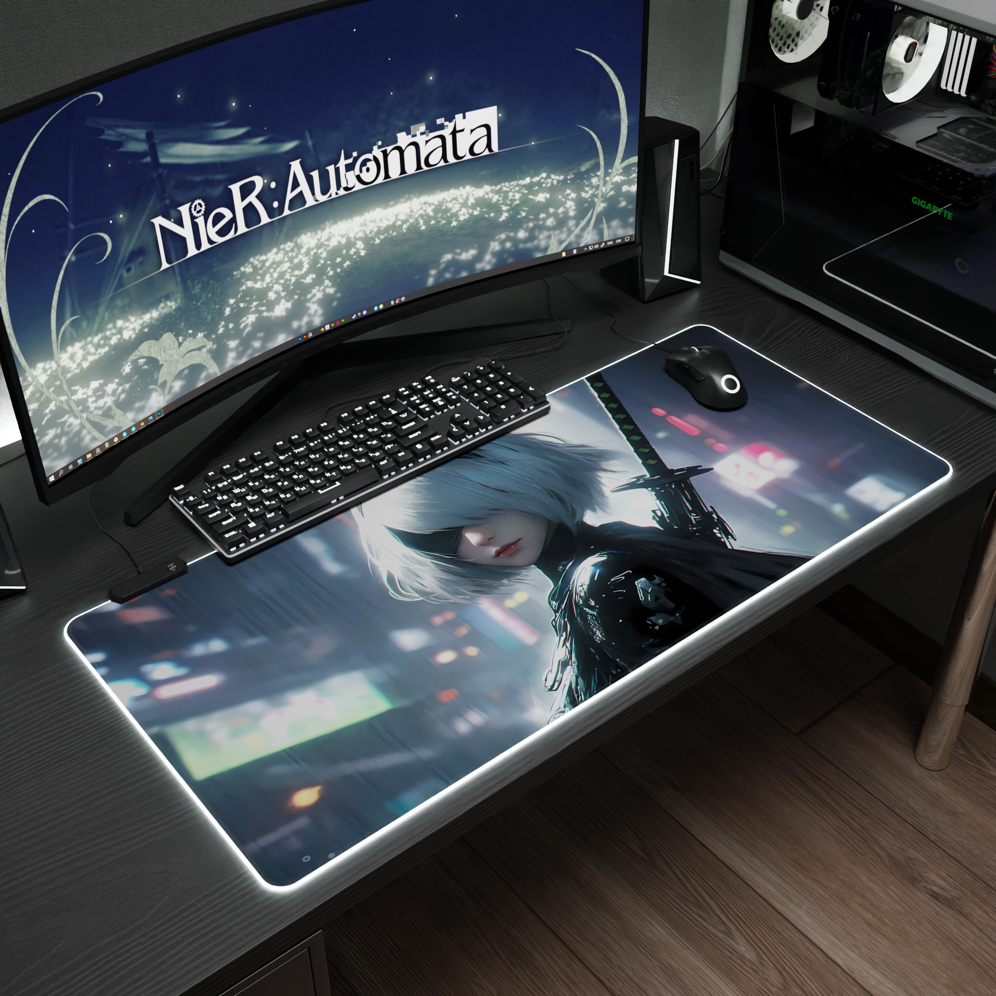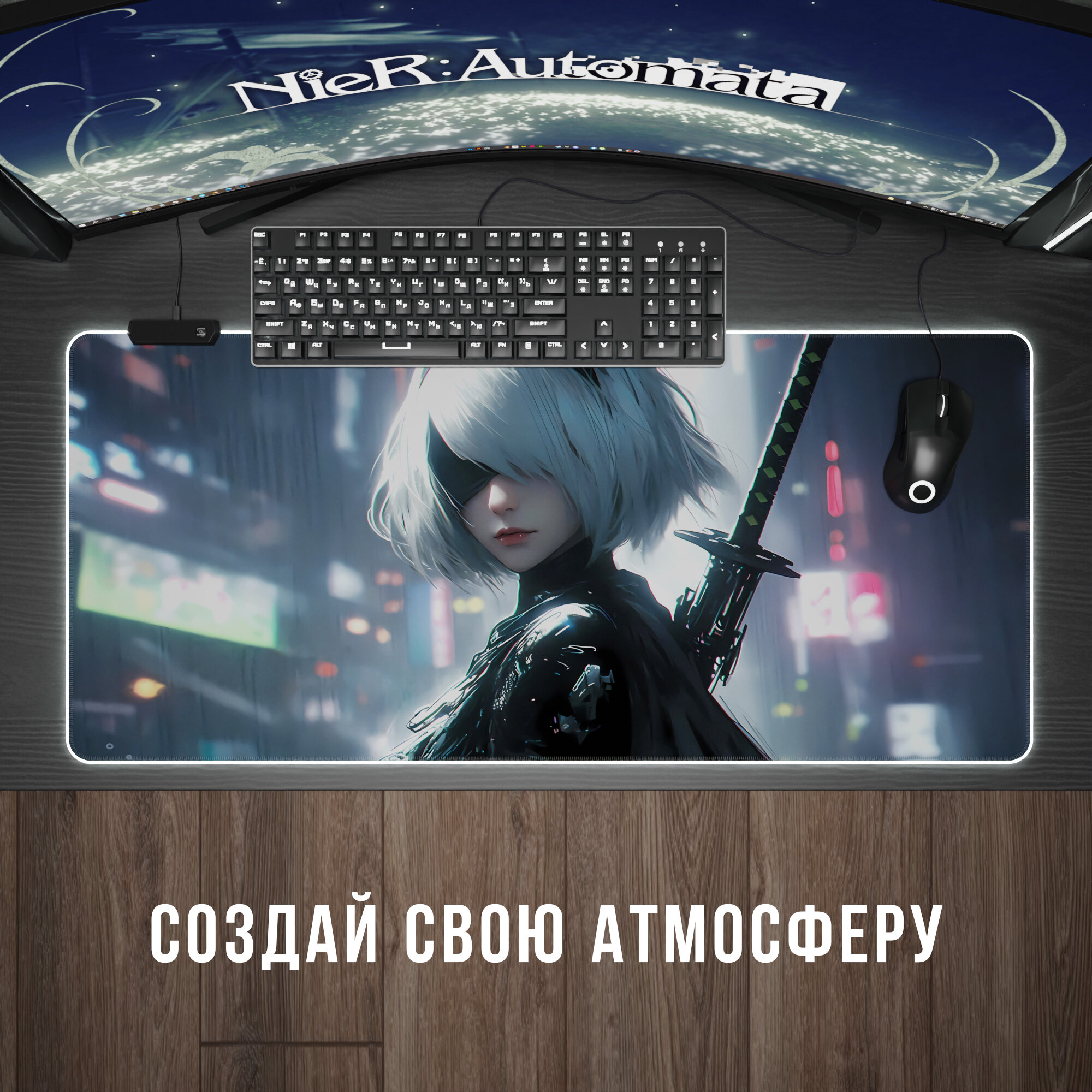 Купить Игровой коврик для мыши Nier Automata с RGB подсветкой