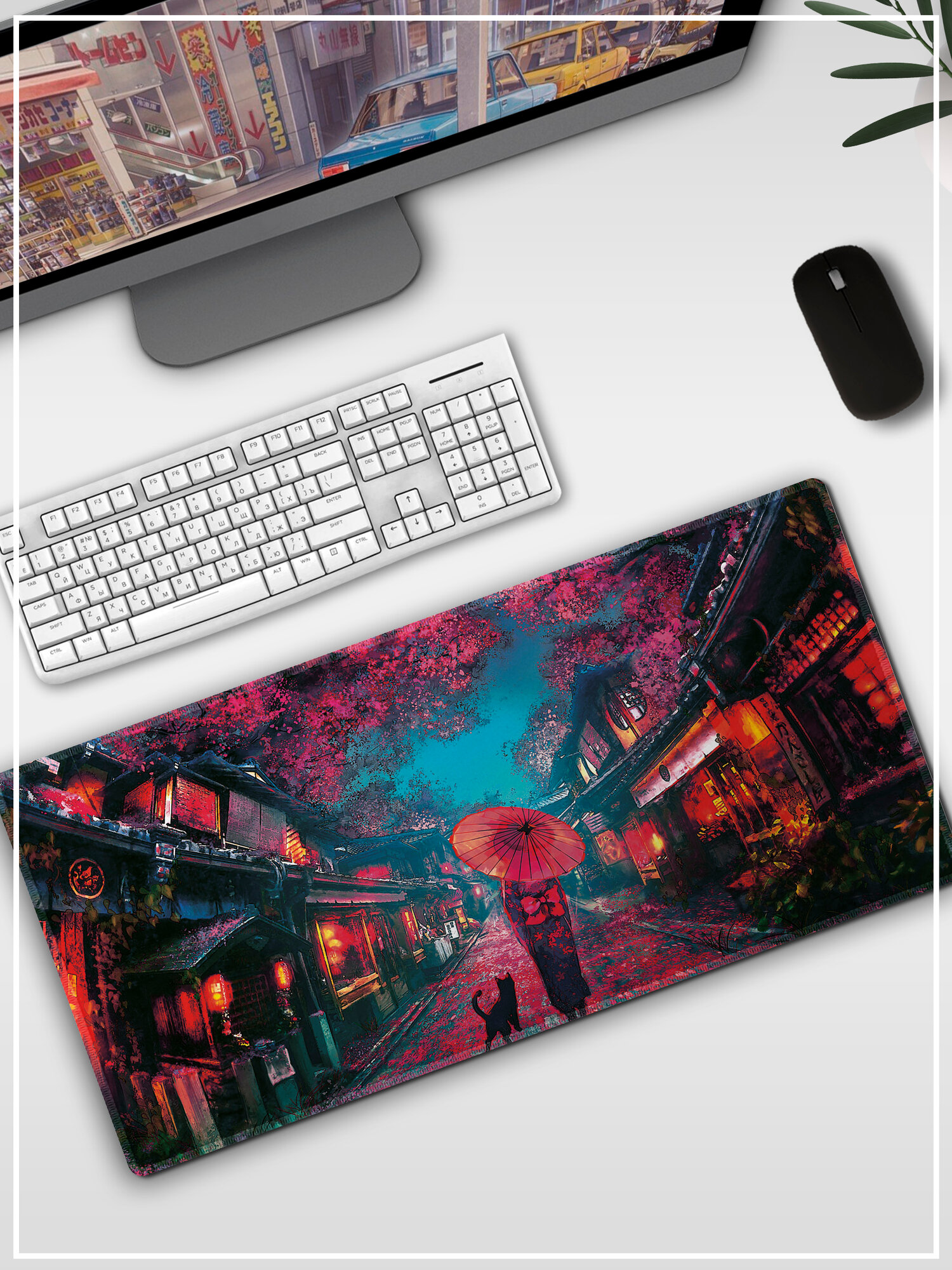 Купить Коврик для мыши и клавиатуры "Аниме, цветение сакуры" на весь стол, большой размер, 60х30 см