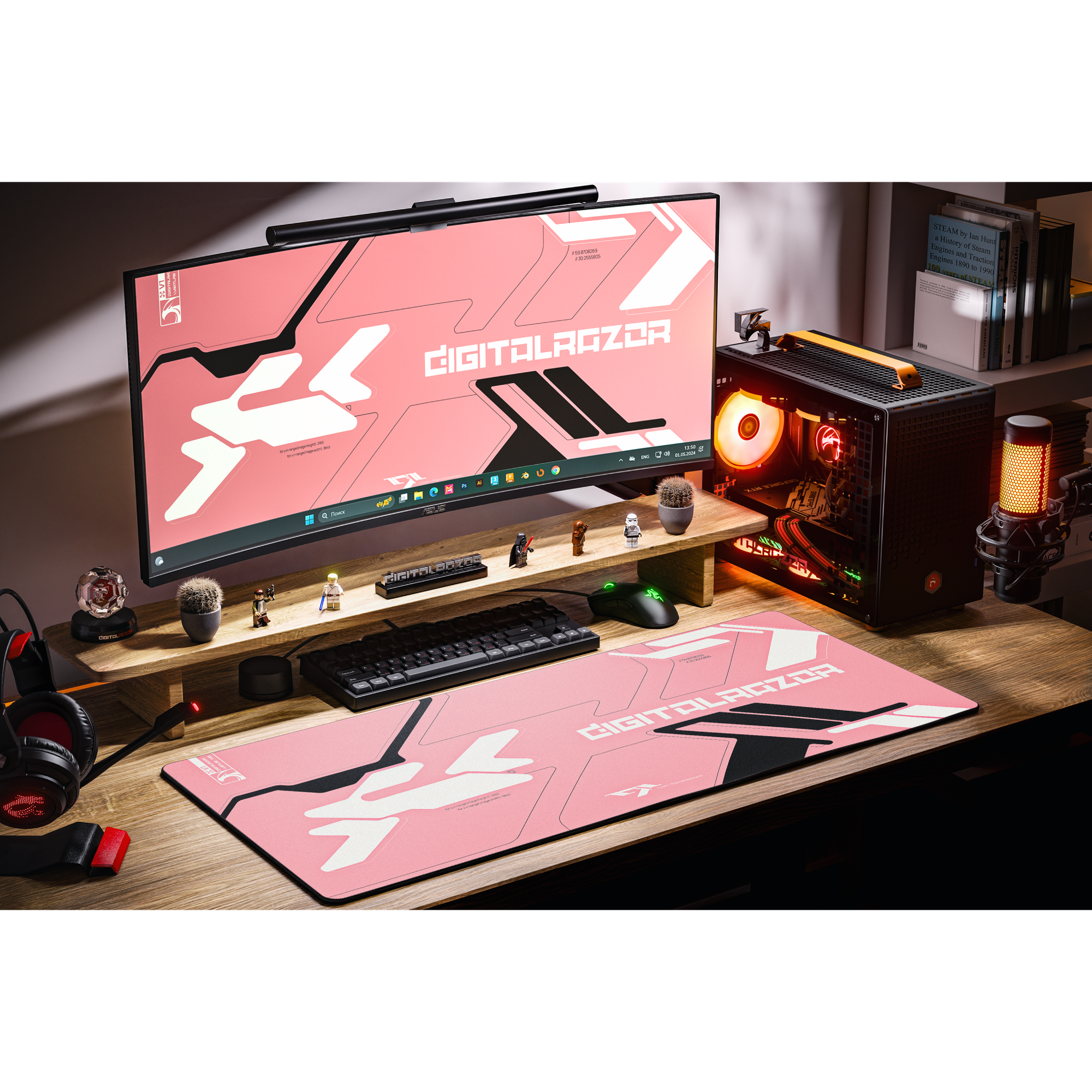 Купить Игровой коврик для мыши DigitalRazor Branded Pink 900x400x4mm, белый, розовый