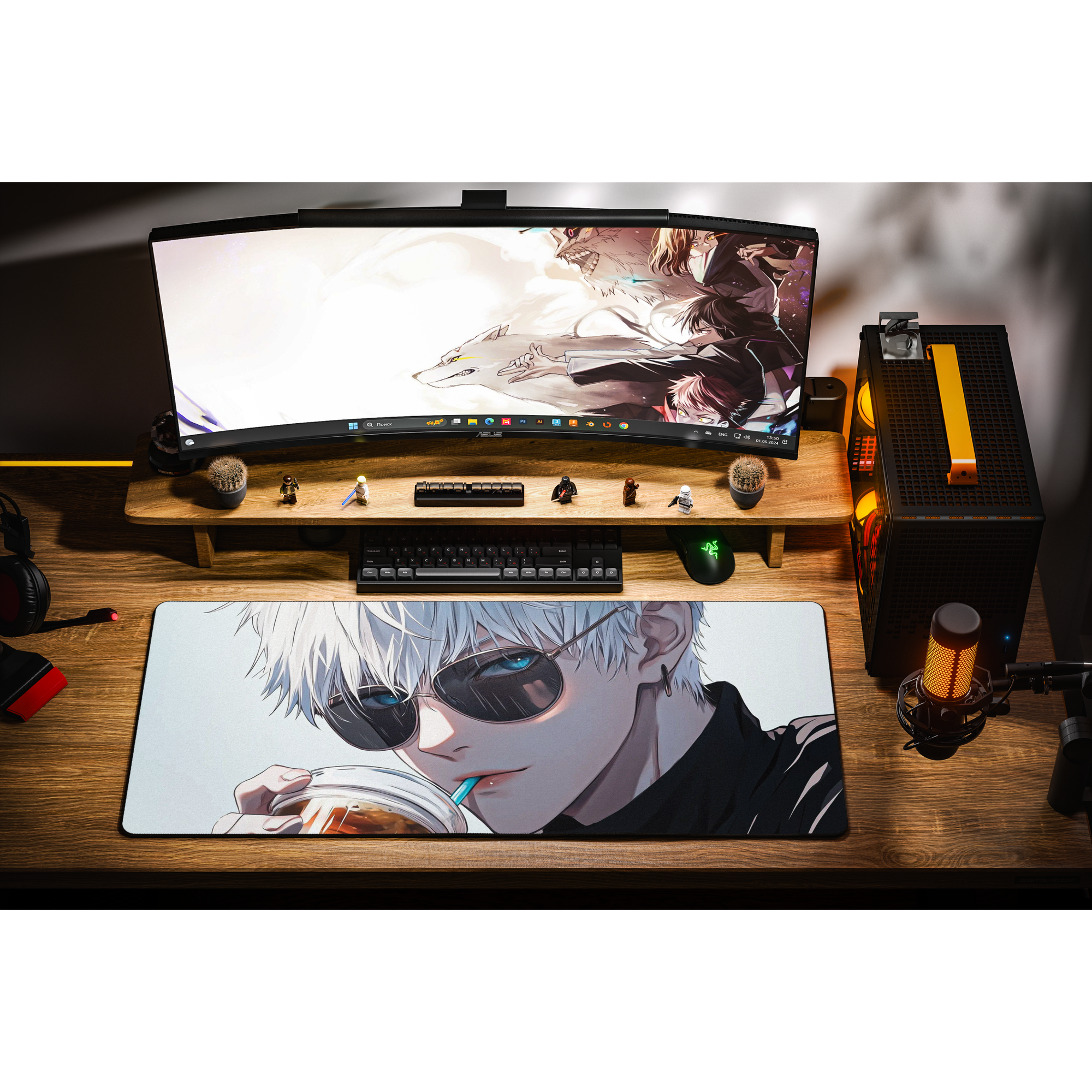 Игровой коврик для мыши DR X Symero Satoru Gojo Blue 900x400x4mm, синий, чёрный
