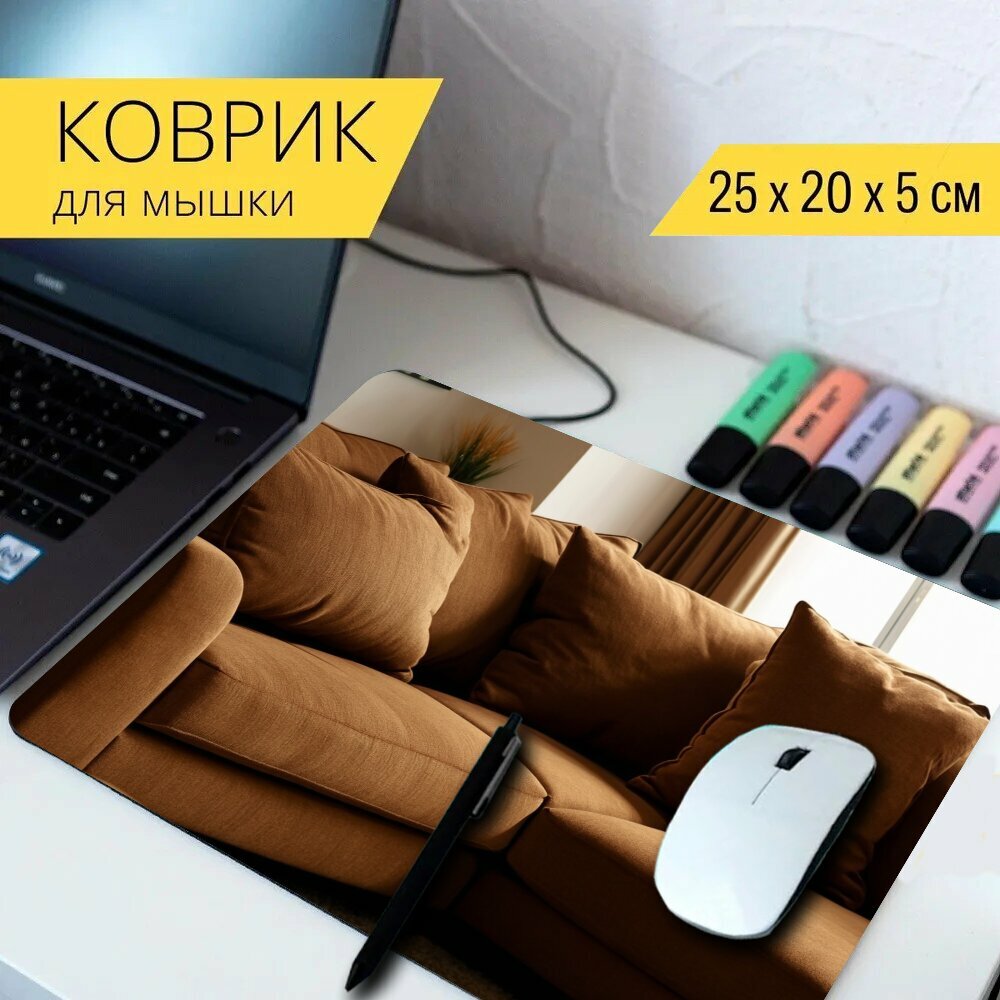 Коврик для мыши с принтом "Коричневая кушетка, усыпанная мягкими подушками" 25x20см. интересное: