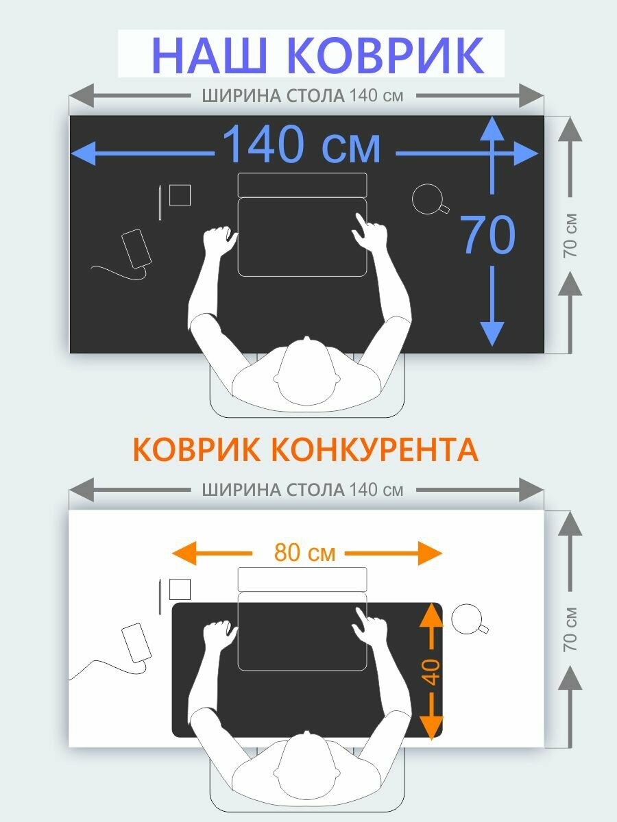 Коврик для мыши большой 140х70 см, для стола, черный, двусторонний, экокожа интересное: