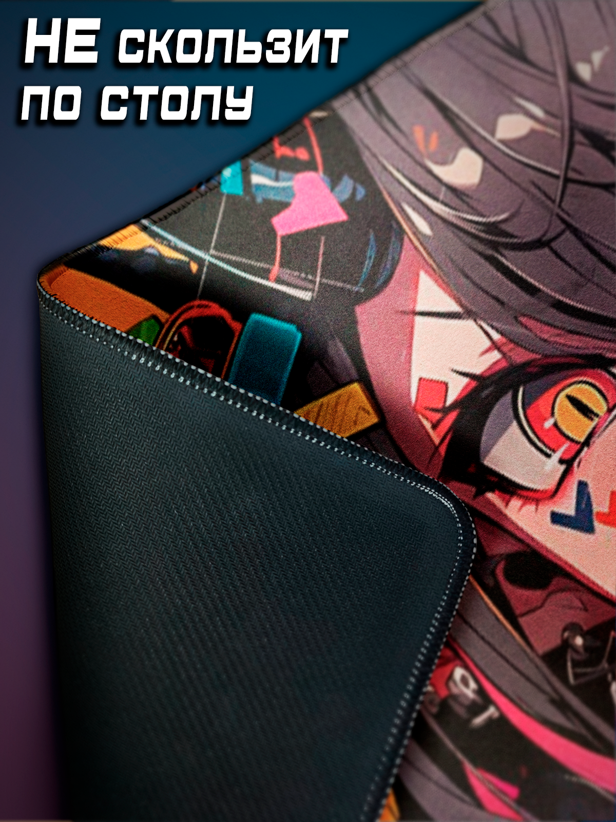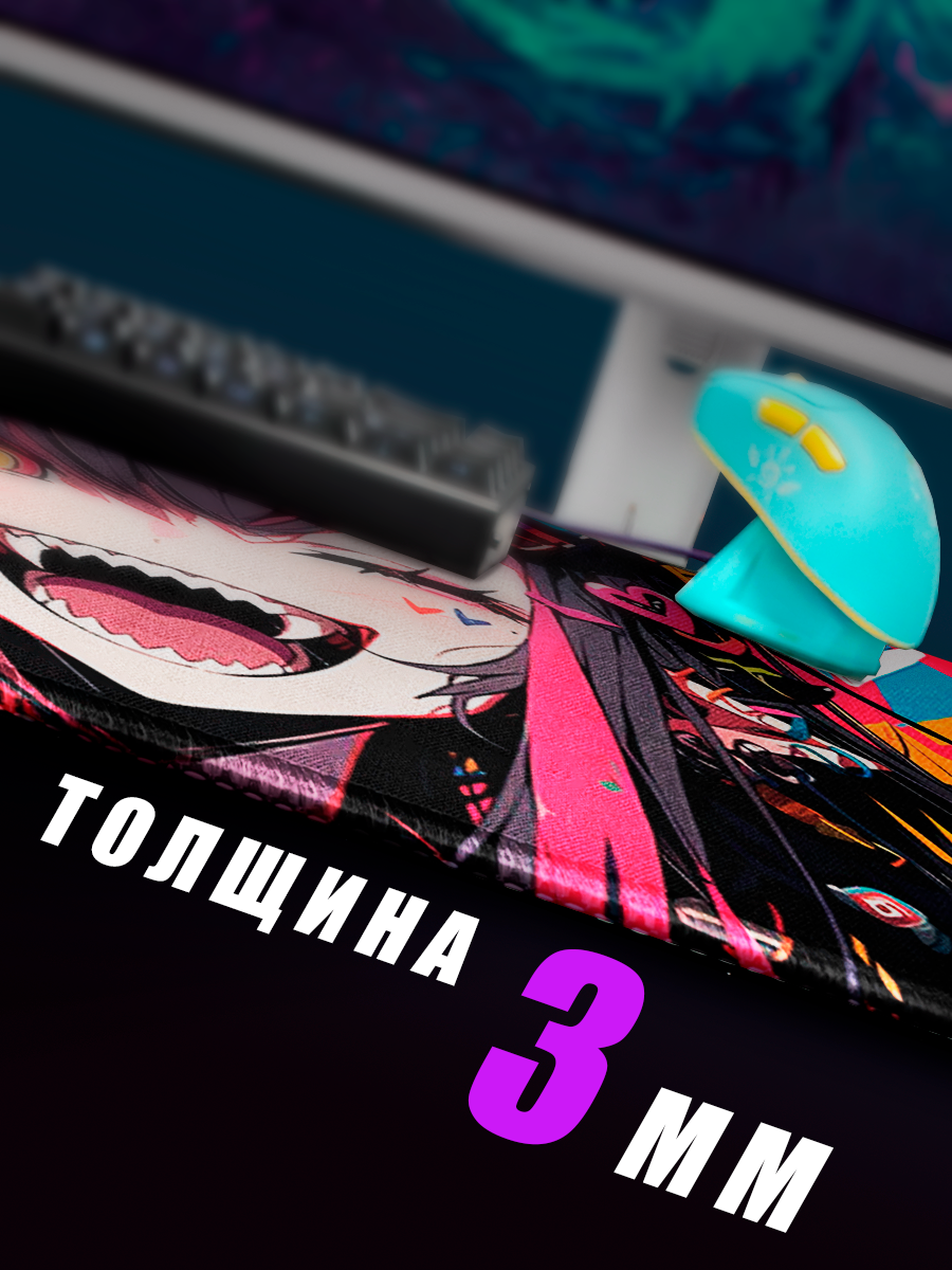 Коврик для мышки большой 900х400 Демоница, Игровой коврик для мыши аниме XXL, фиолетовый