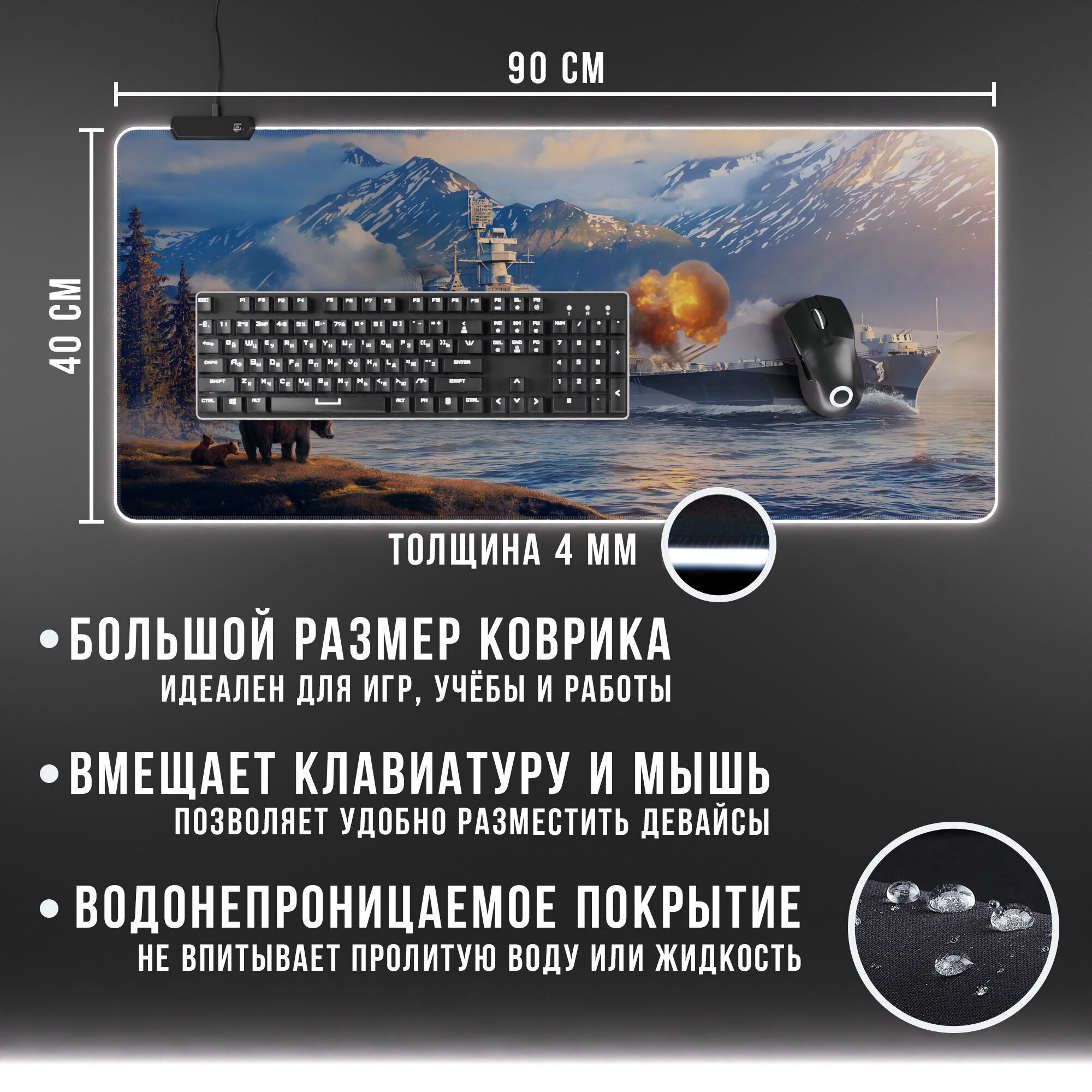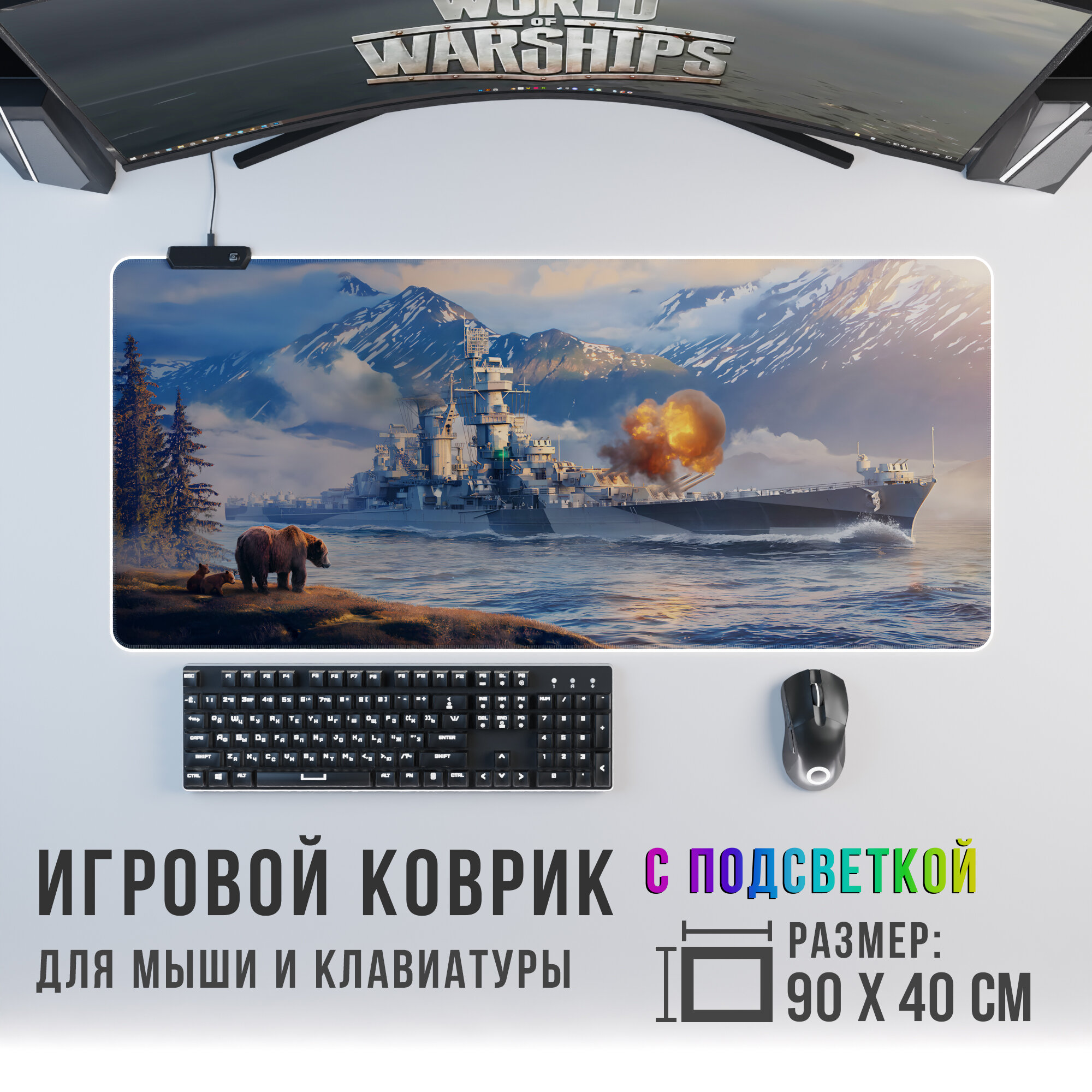 Игровой коврик для мыши World of Warship 1 с RGB подсветкой интересное: