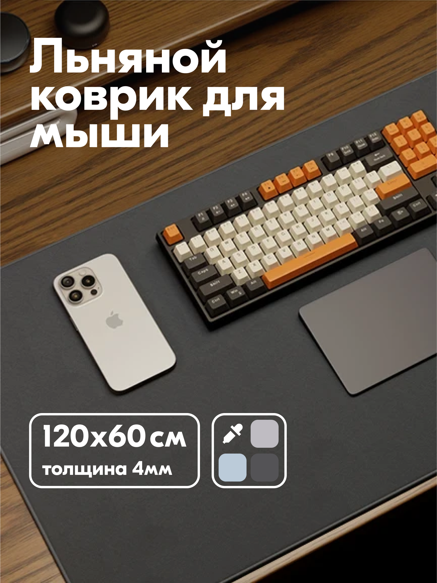 Коврик для мыши большой 1200*600 мм, для клавиатуры и мыши, на стол компьютерный, темно-серый, льняной интересное: