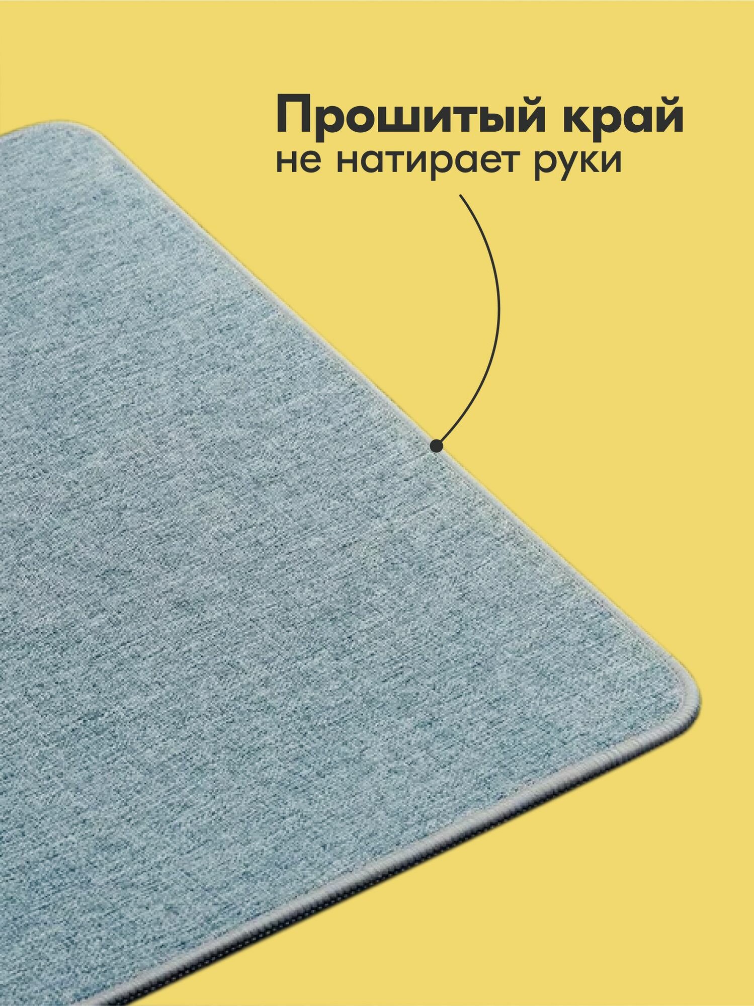 Коврик для мыши большой 900х400х4 мм, для клавиатуры и мышки, для компьютерного стола, серо-голубой, льняной интересное:
