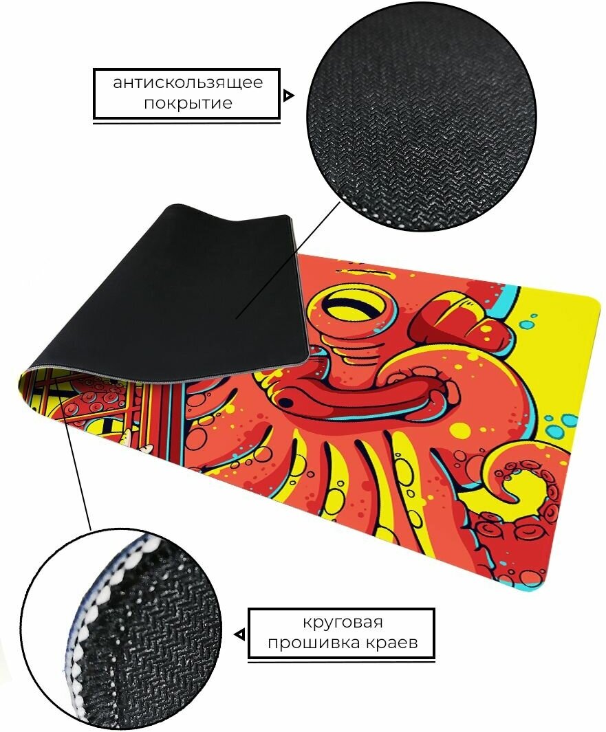Коврик для мыши большой 90 х 40 см, антискользящий осьминог 2 интересное: