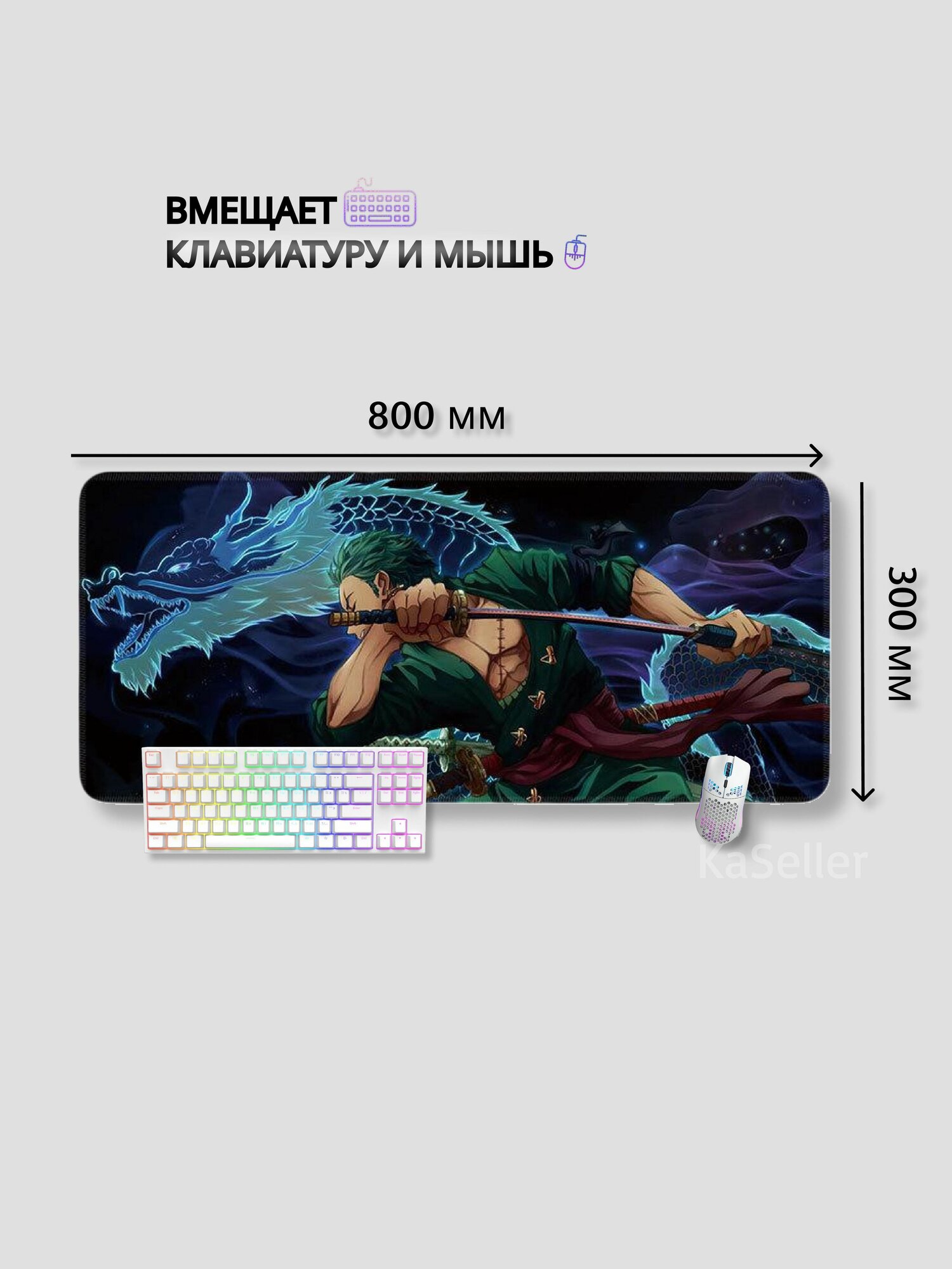 Коврик для мышки большой аниме one piece Зоро 800х300 мм интересное: