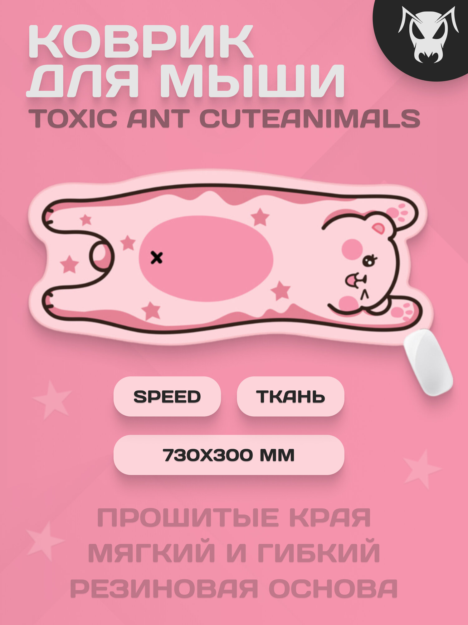 Коврик для мыши милый 70х30 женский Toxic Ant CuteAnimals, Pink Teddy Bear интересное:
