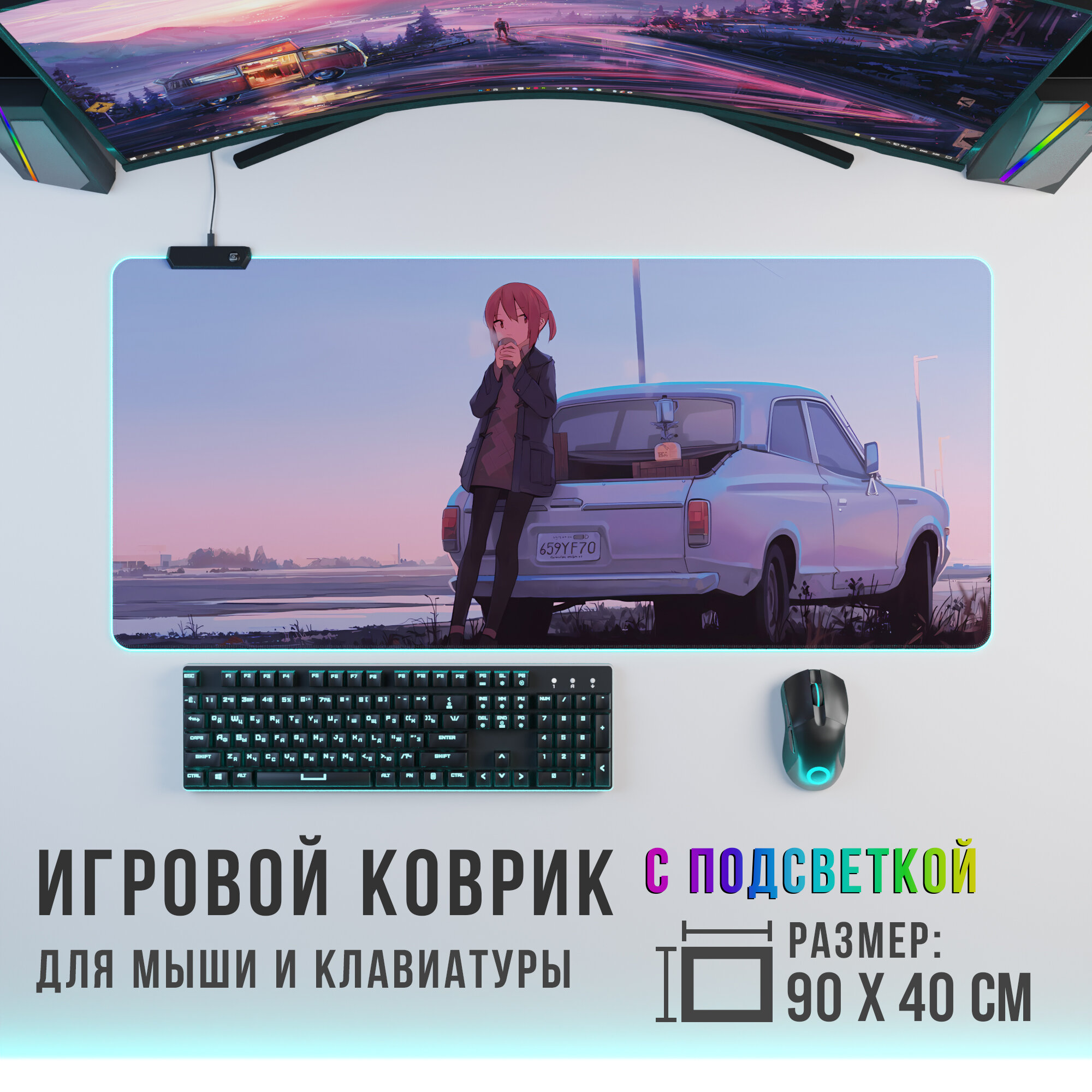 Игровой коврик для мыши Anime Девочка с машиной с RGB подсветкой интересное: