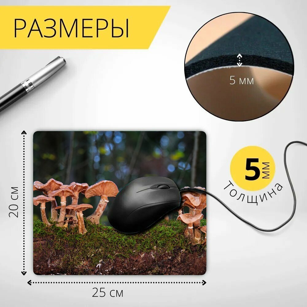 Коврик для мыши с принтом "Грибы, дисковый грибок, грибок" 25x20см. интересное:
