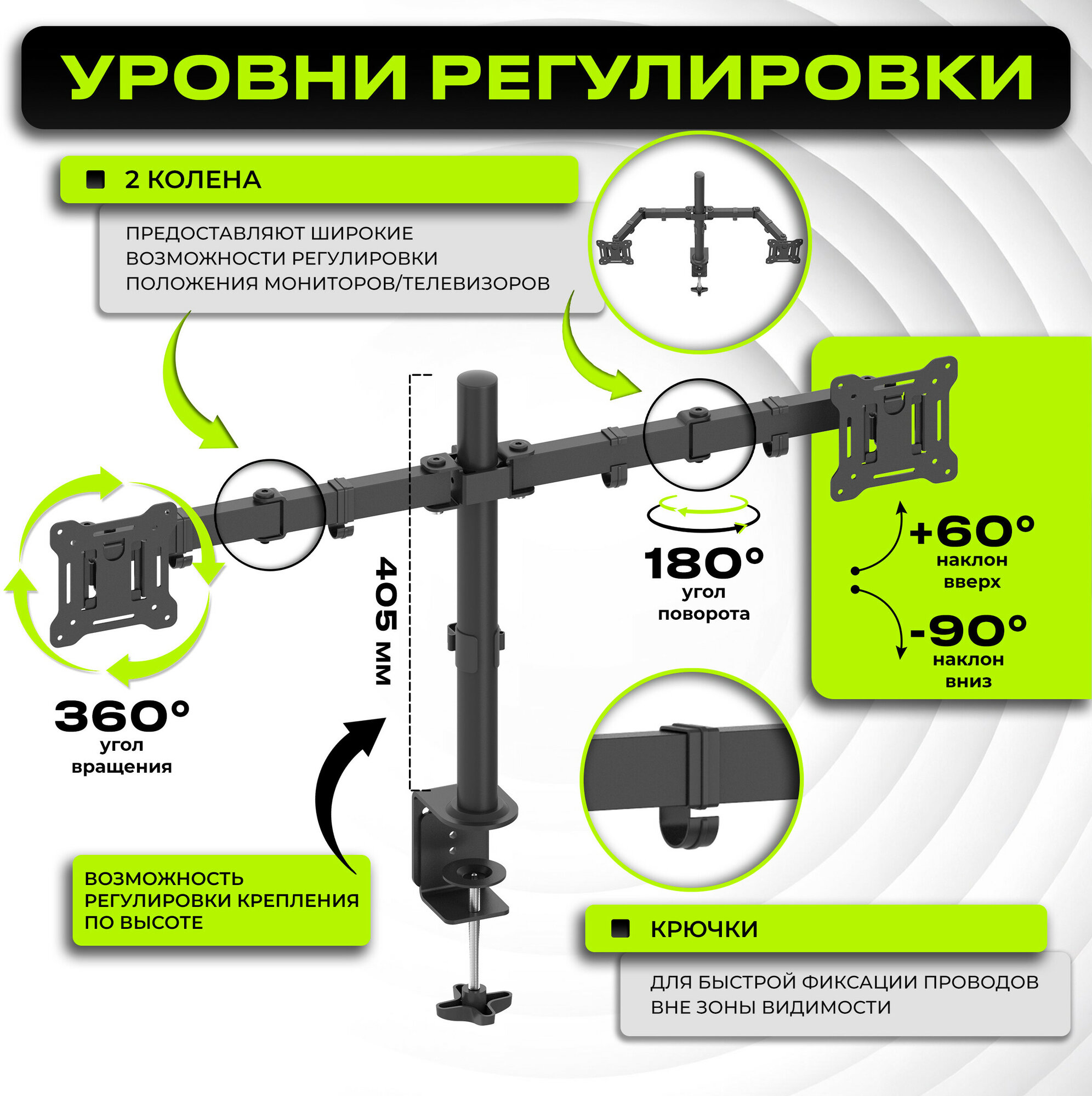 Кронштейн KEIZEN KZ-20396112 для двух мониторов на стол серый интересное: