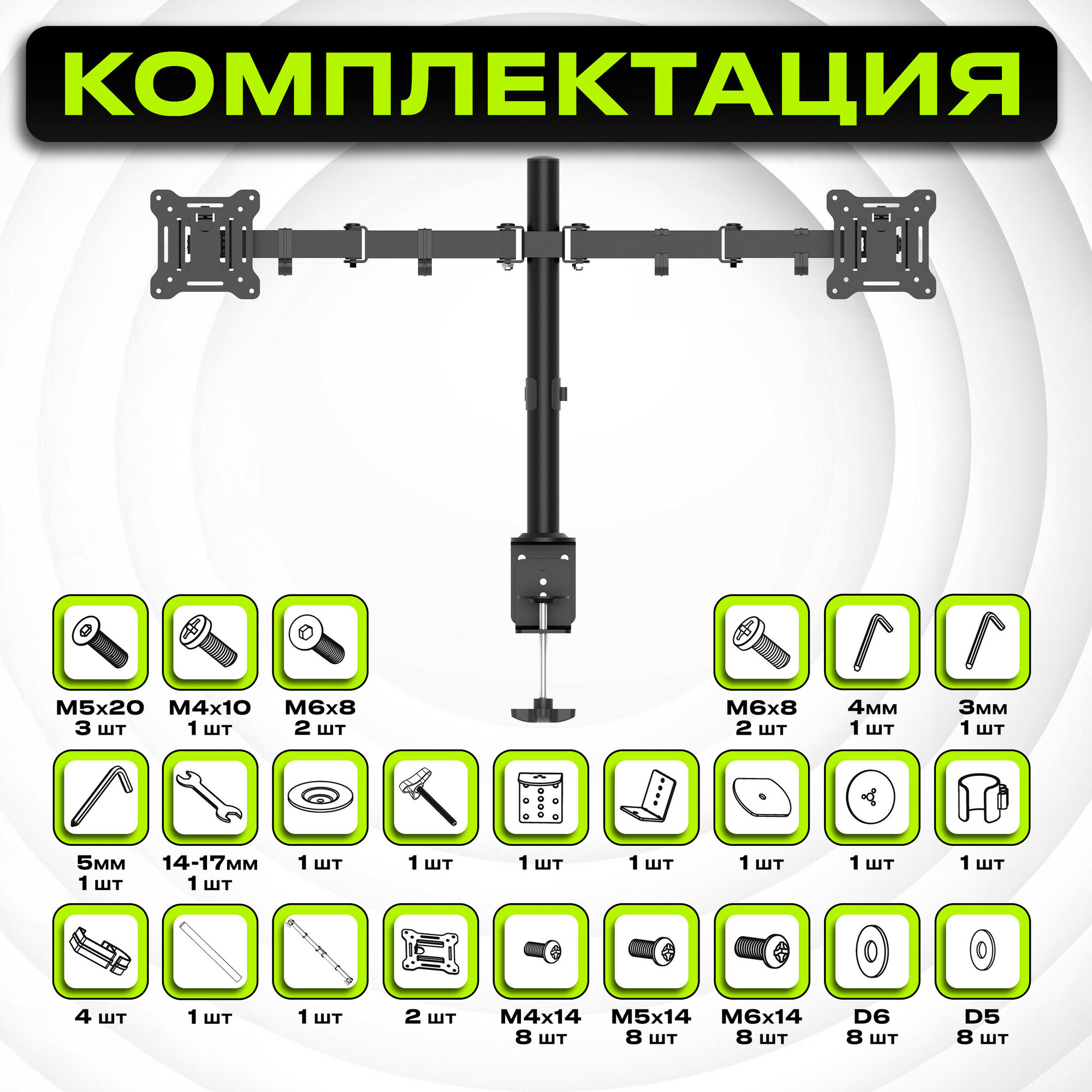 Кронштейн для двух мониторов на стол поворотный KEIZEN KZ-20396117