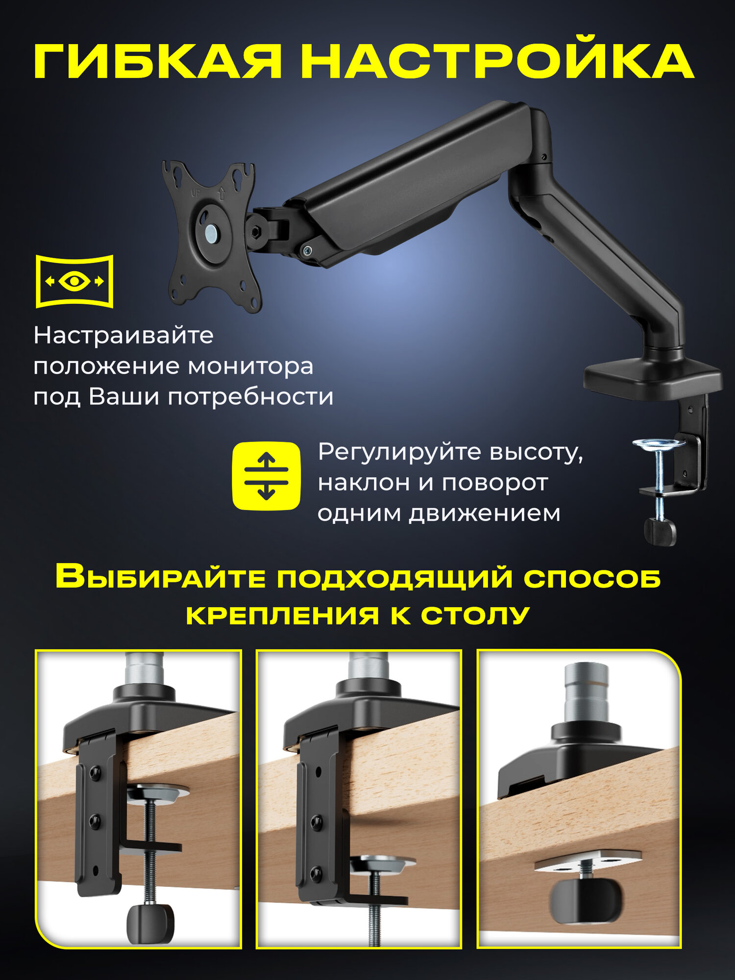 Кронштейн для монитора на стол поворотный KEIZEN KZ-20396116 интересное: