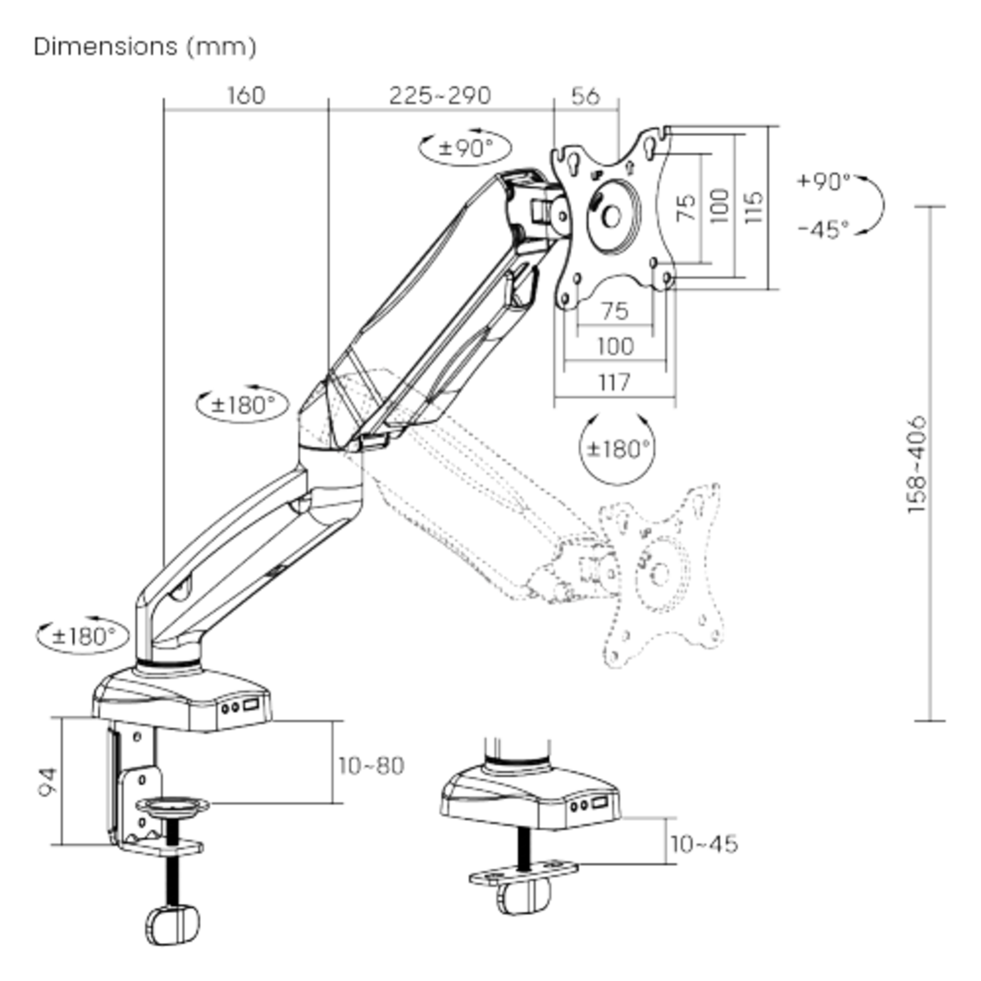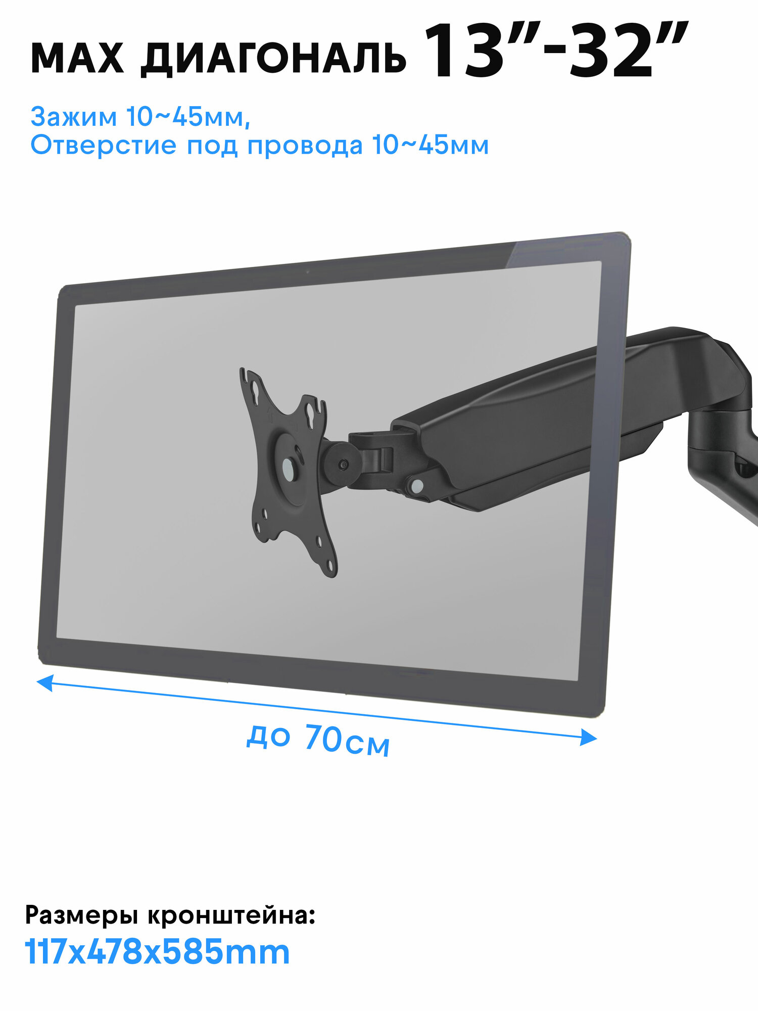 Кронштейн для монитора Godoo 13”-32" дюймов настольный GD13-C012E Matte Black интересное: