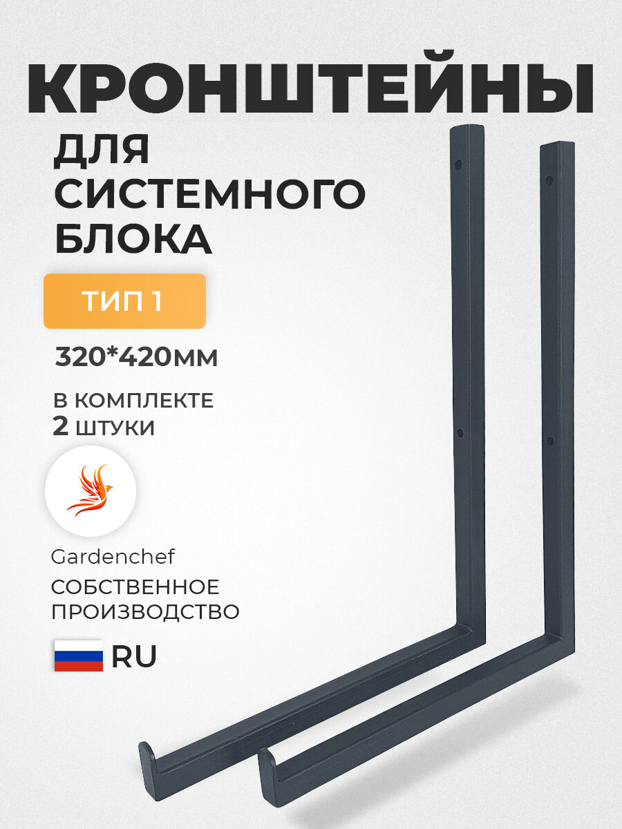 Кронштейн (320х420мм) для системного блока (ПК) на стену/стойка. Проф труба 20х20. 2 шт. GardenChef интересное: