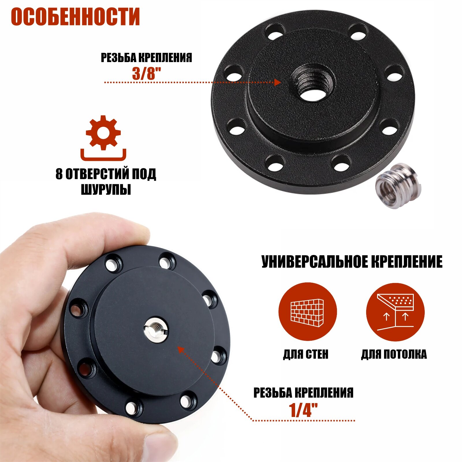 Универсальное крепление FLAN-5 для камеры, для держателя эхолота, резьба 1/4 с переходником интересное:
