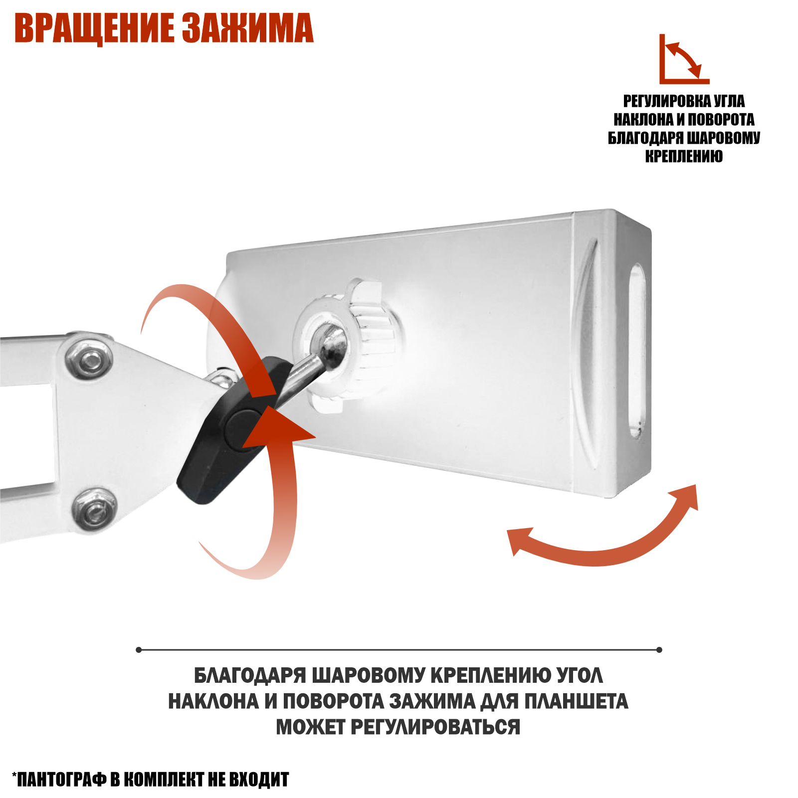 Зажим для планшета шириной до 25 см с креплением на пантограф, цвет белый интересное: