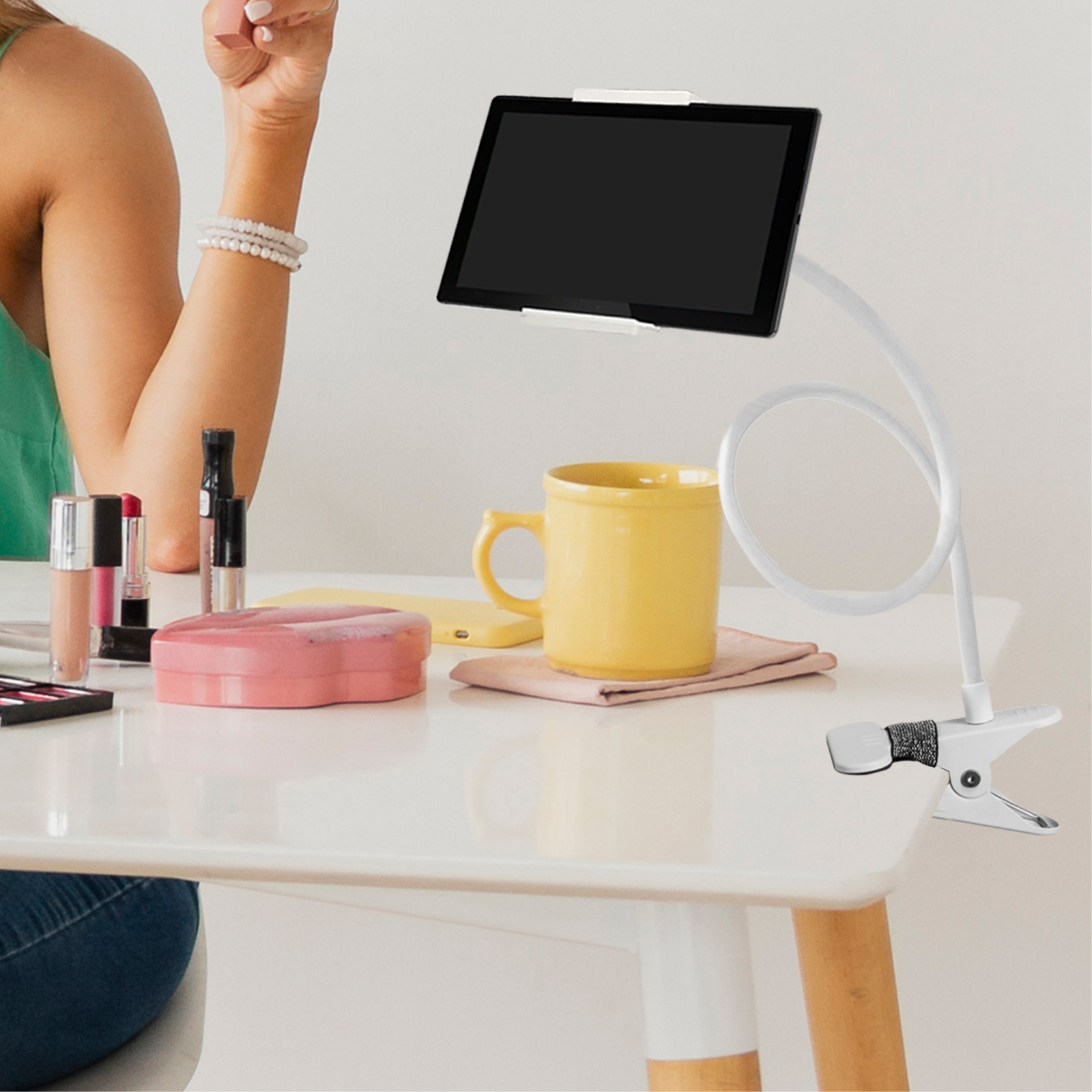 Купить Гибкий держатель-прищепка для планшета до 25 см с металлическим зажимом для стола, белый
