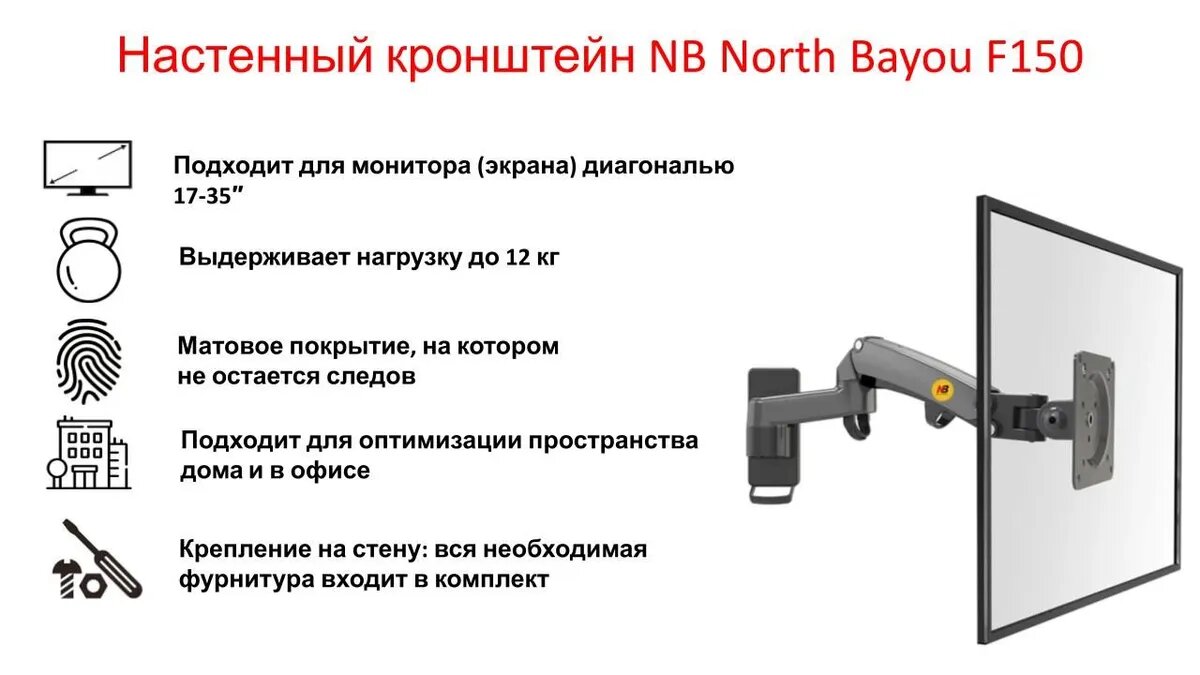 Кронштейн на стену для телевизора / монитора NB North Bayou F150, 17-35" до 12 кг, матовый черный интересное: