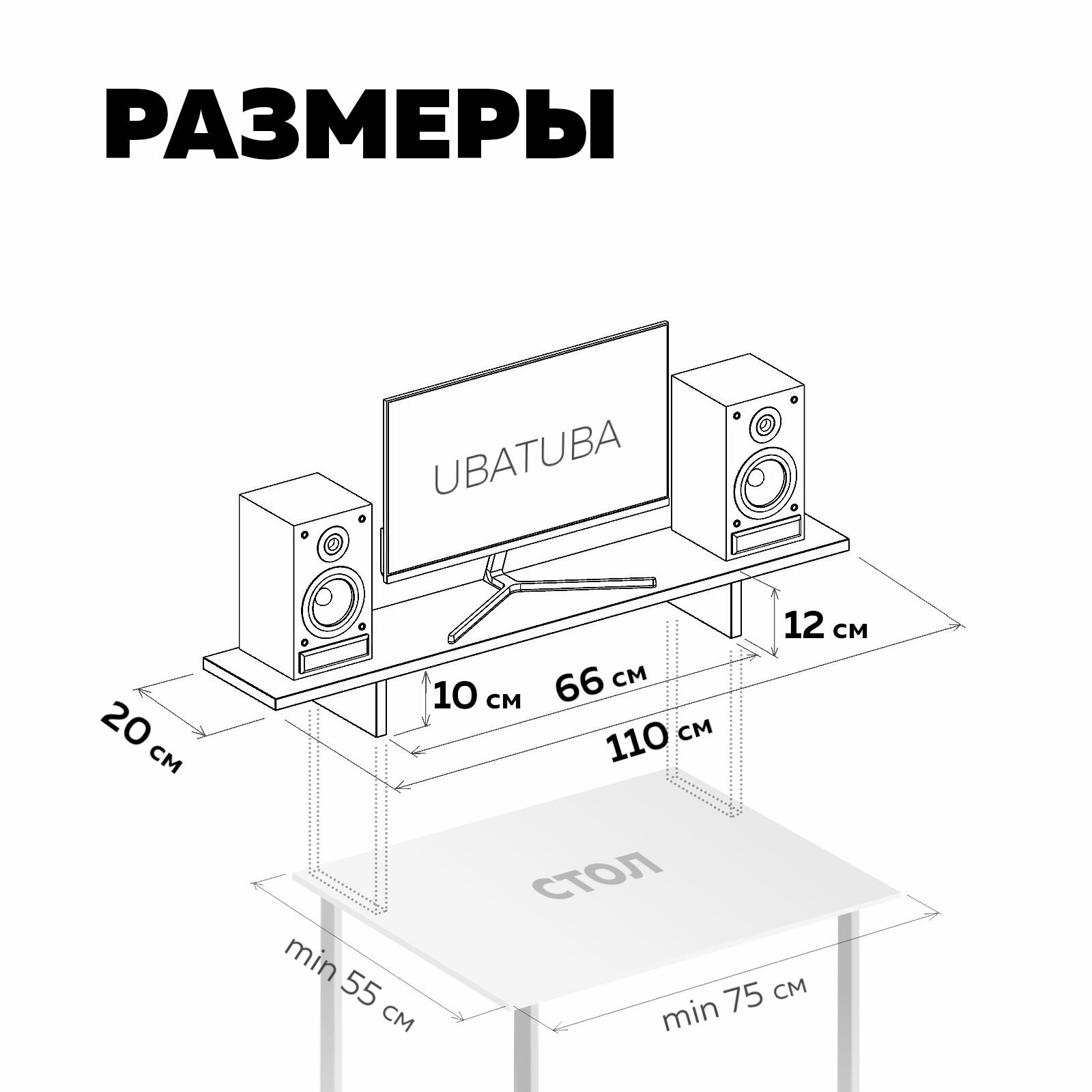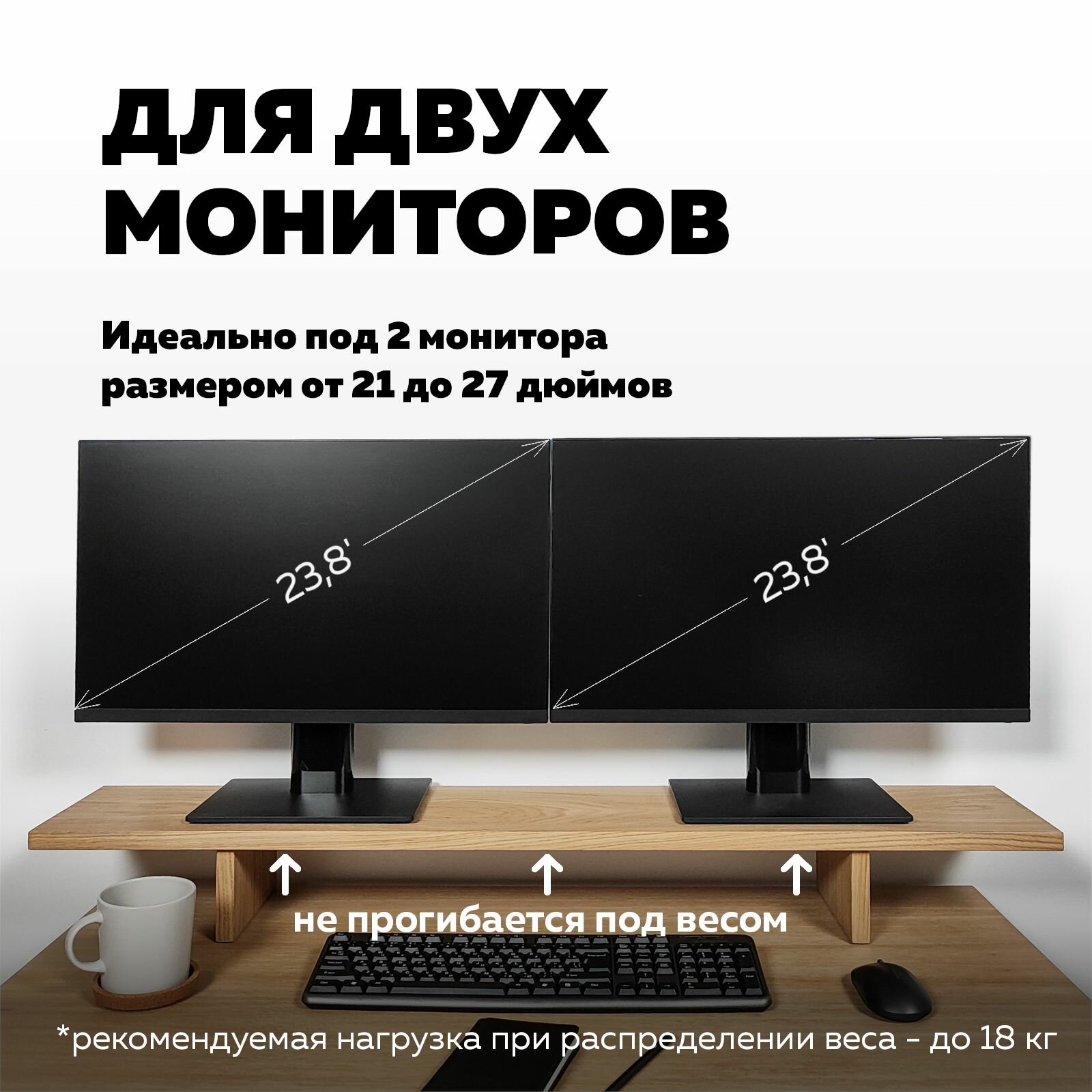 Подставка под монитор/для двух мониторов UBATUBA, 110 см настольная деревянная, Натуральный дуб, 1 шт интересное: