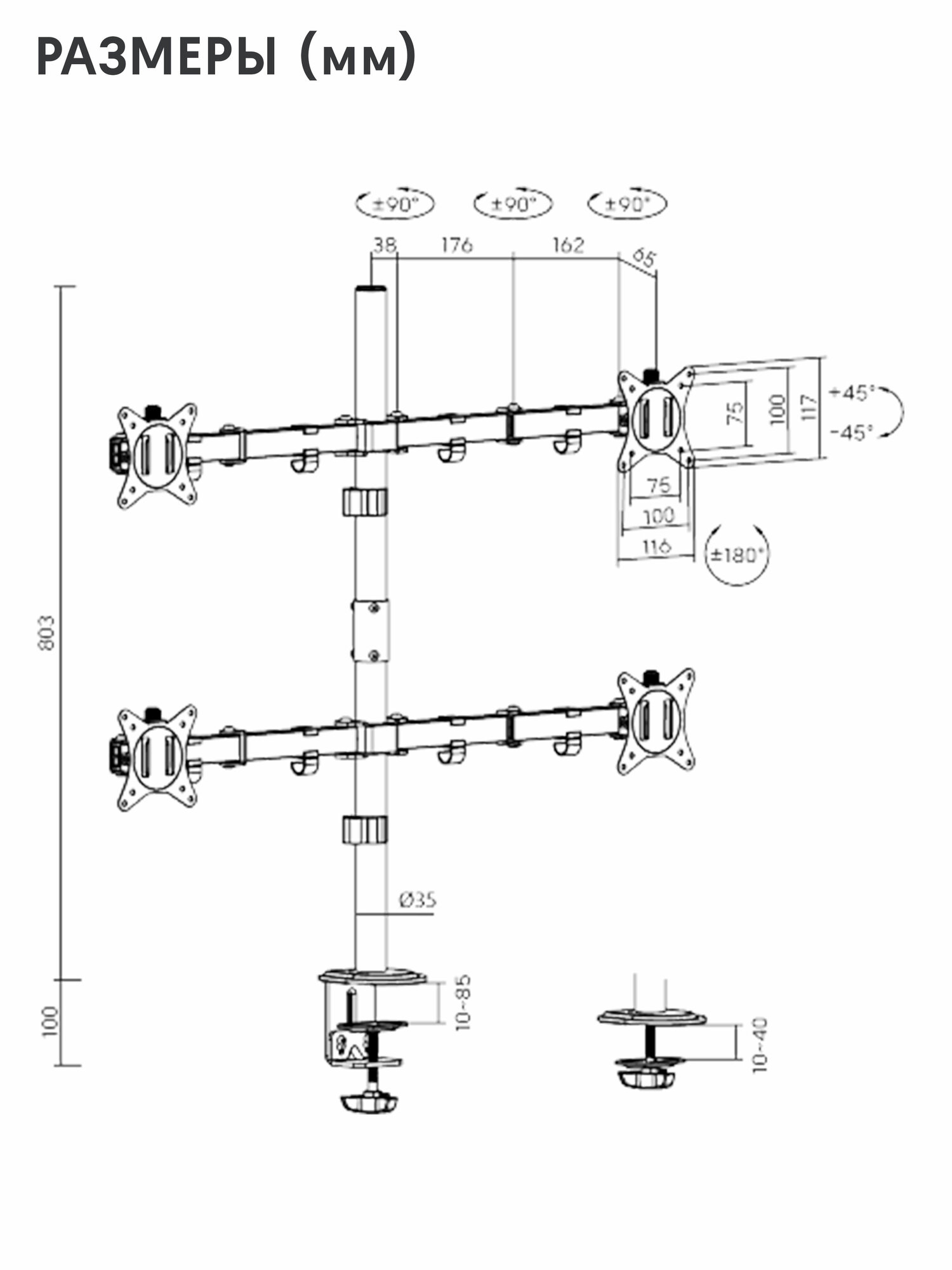 Настольный кронштейн для двух мониторов NB North Bayou G35, 22-32" до 12 кг, матовый черный