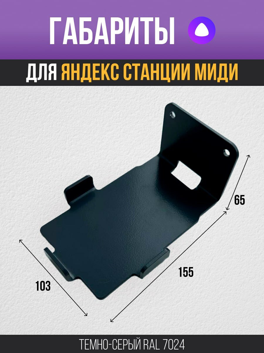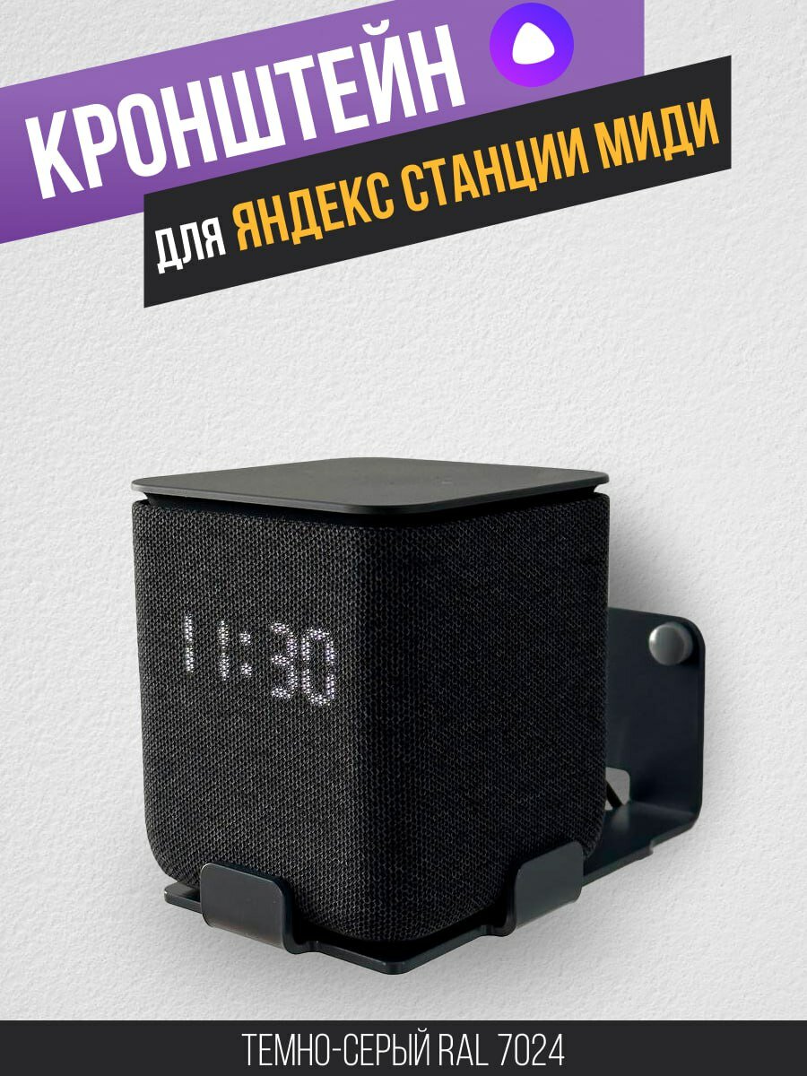 Кронштейн держатель для Яндекс Станции Миди, настенный металлический, цвет: графитовый серый RAL 7024 интересное: