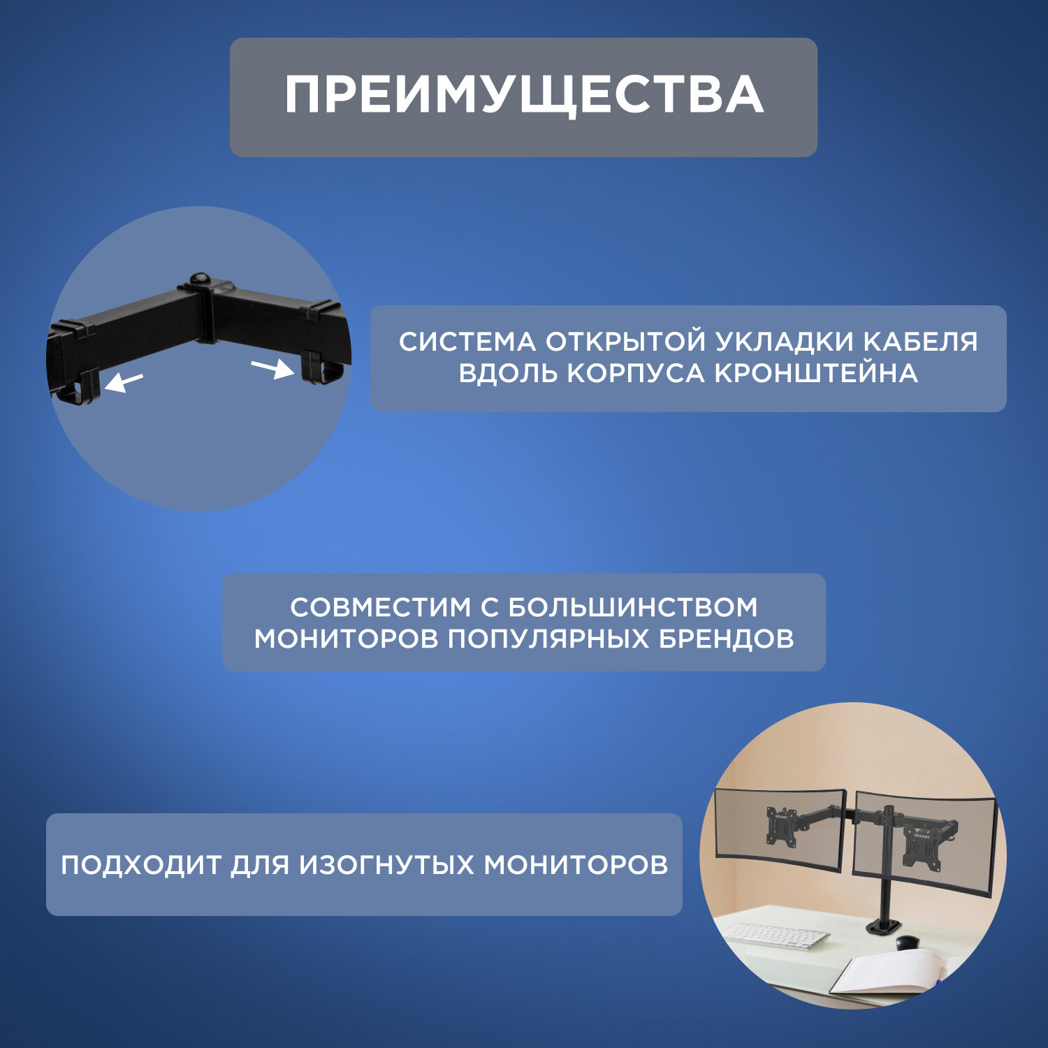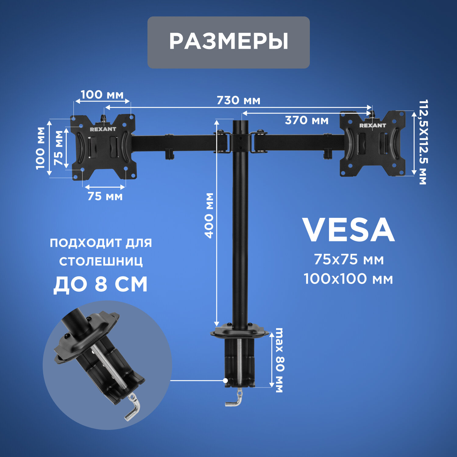 Кронштейн Rexant 13-32, для двух мониторов, настольный, черный интересное: