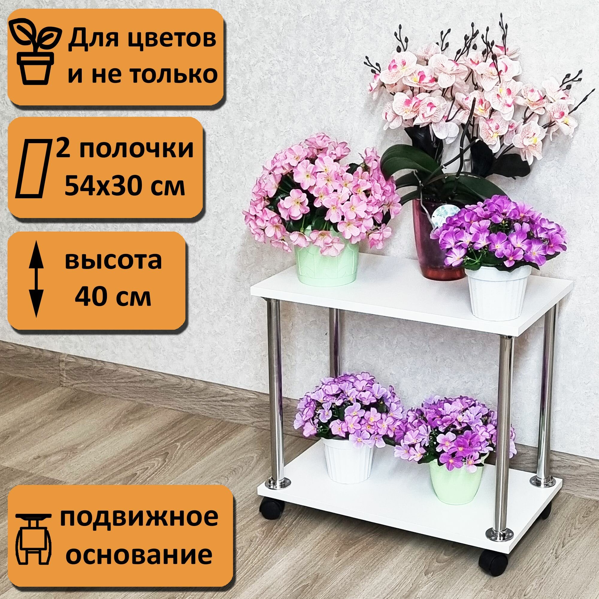 Подставка под системный блок или принтер на колесиках. 2 полочки 54х30 см, белый. интересное: