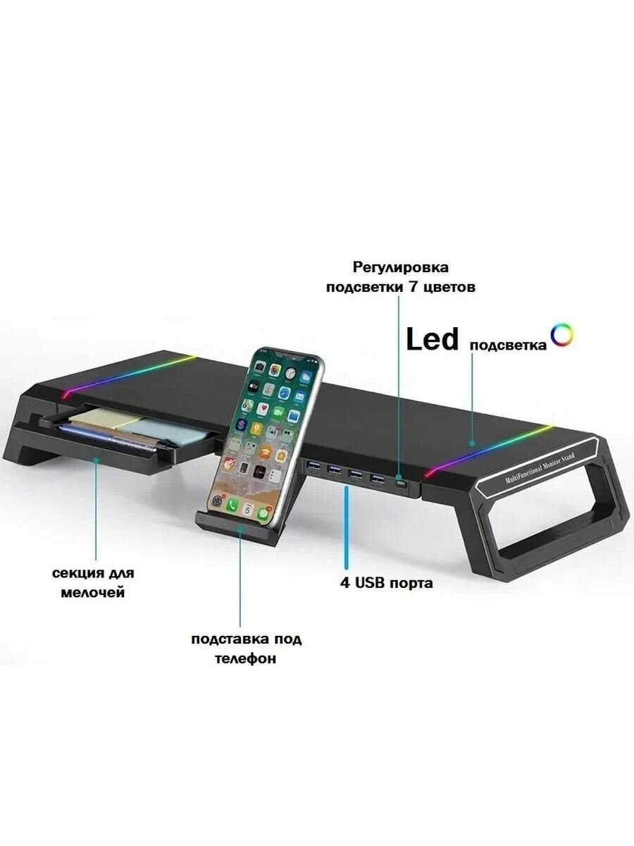 Подставка для монитора с RGB-подсветкой USB 3 интересное: