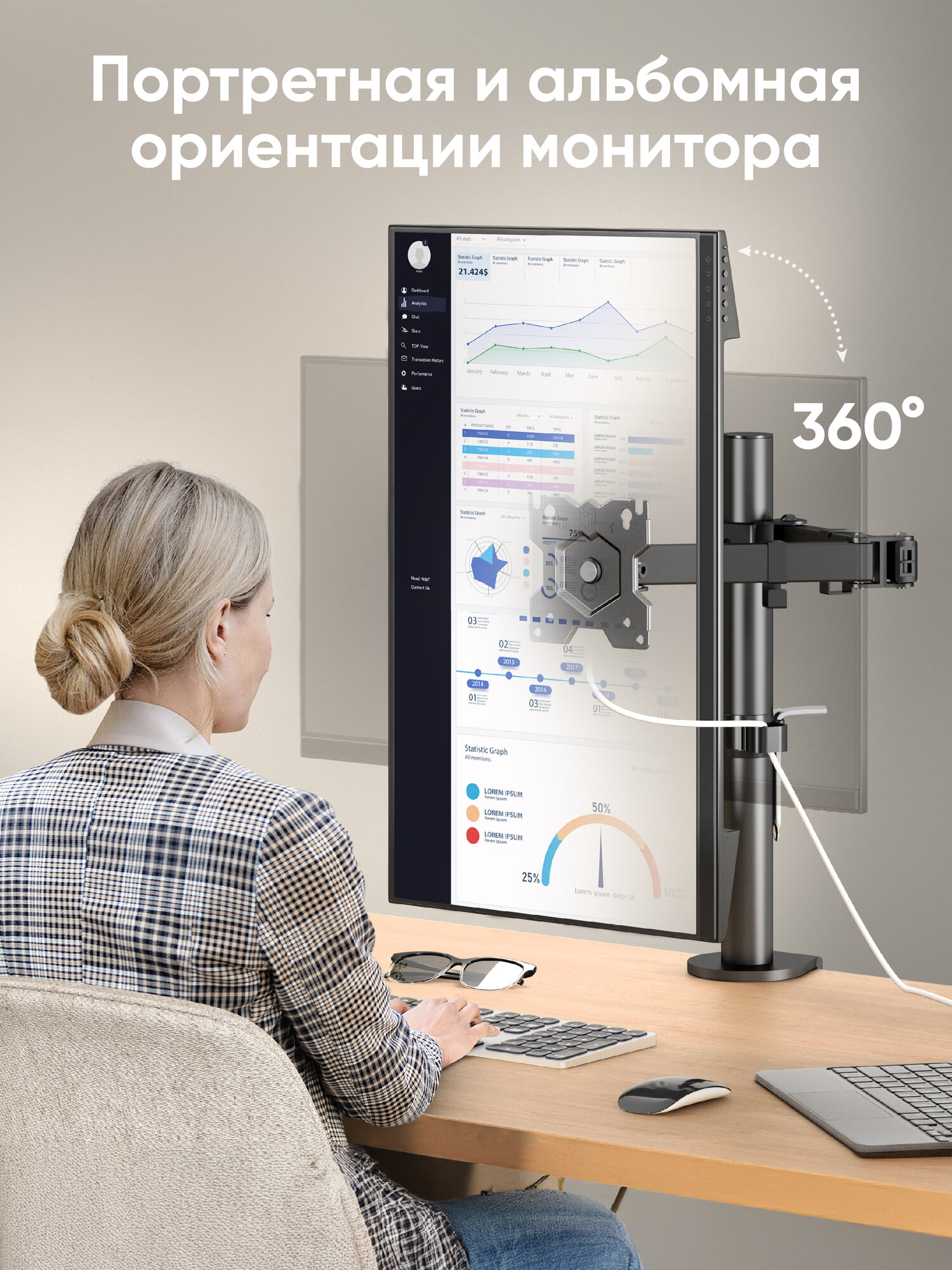 Кронштейн для монитора 13"- 34" ONKRON D121E настольный, до 8 кг, чёрный интересное:
