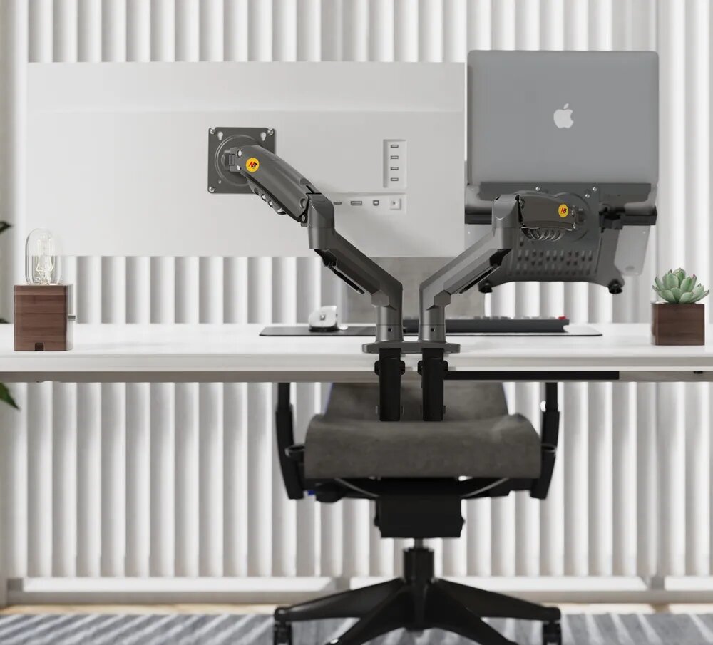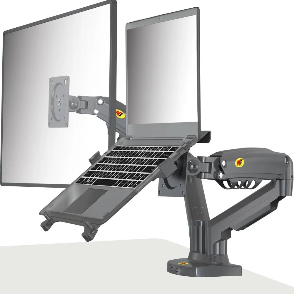 Настольный кронштейн для двух мониторов 17-27" с подставкой для ноутбука 10-17" North Bayou F160, черный матовый интересное: