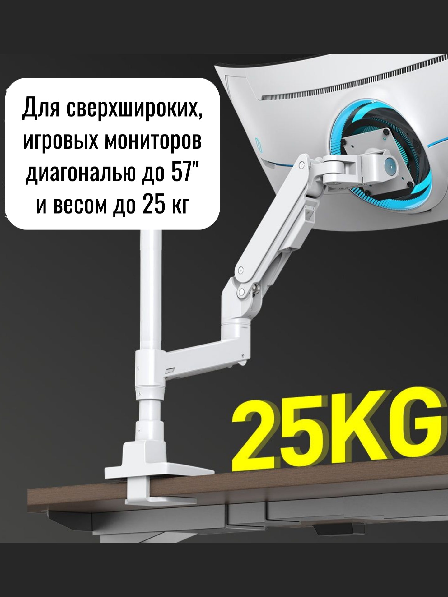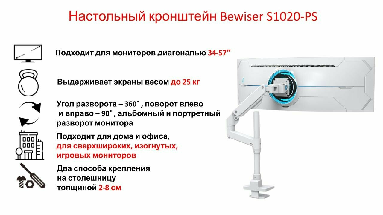Настольный кронштейн для игрового монитора Bewiser S1020-PS, 34-57" до 25 кг, белый интересное: