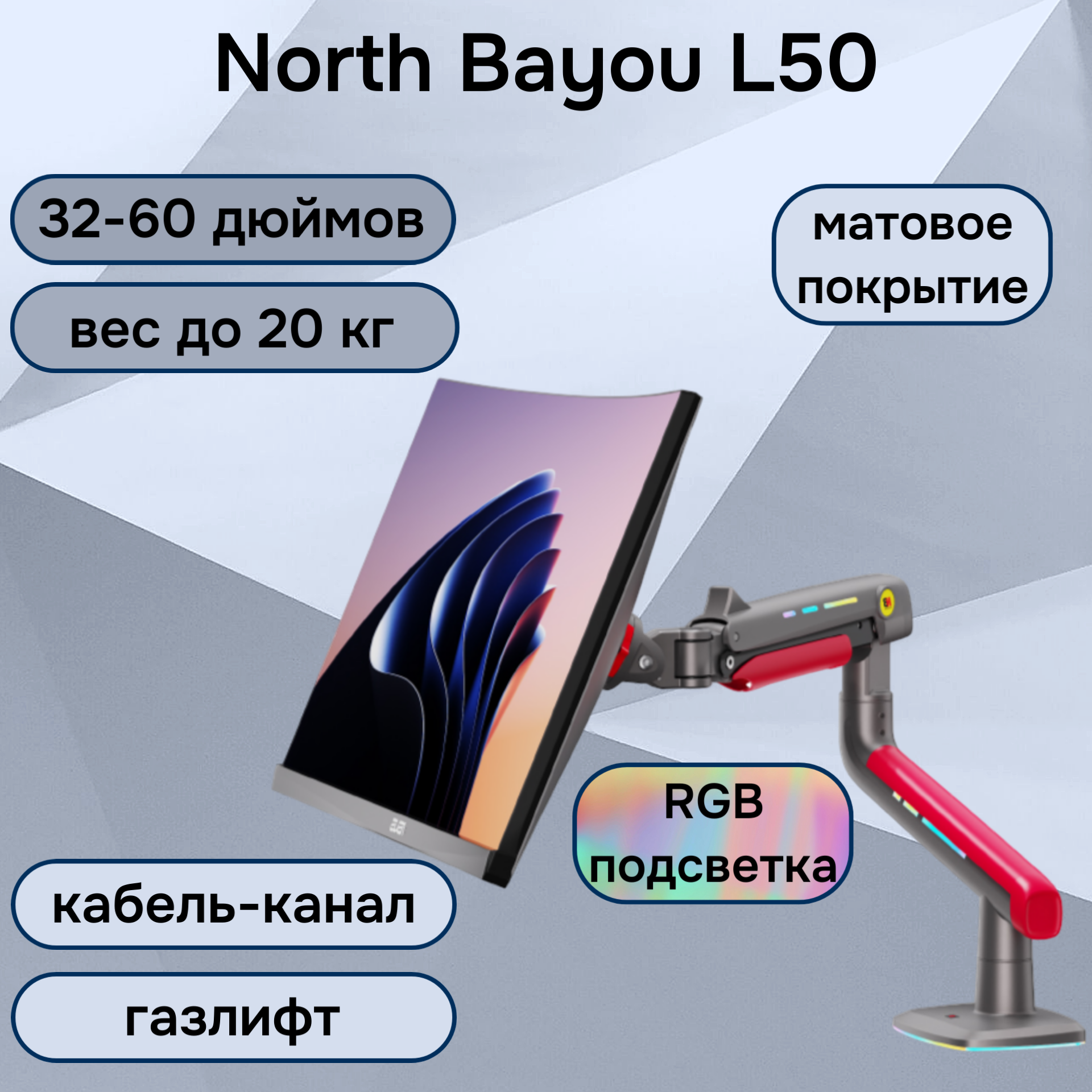 Настольный кронштейн для монитора NB North Bayou L50, 32-60" до 20 кг, с RGB-подсветкой, матовый черный интересное: