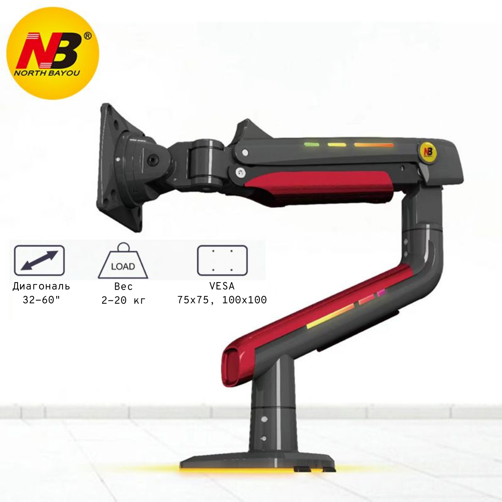 Купить Настольный кронштейн для монитора NB North Bayou L50, 32-60" до 20 кг, с RGB-подсветкой, матовый черный