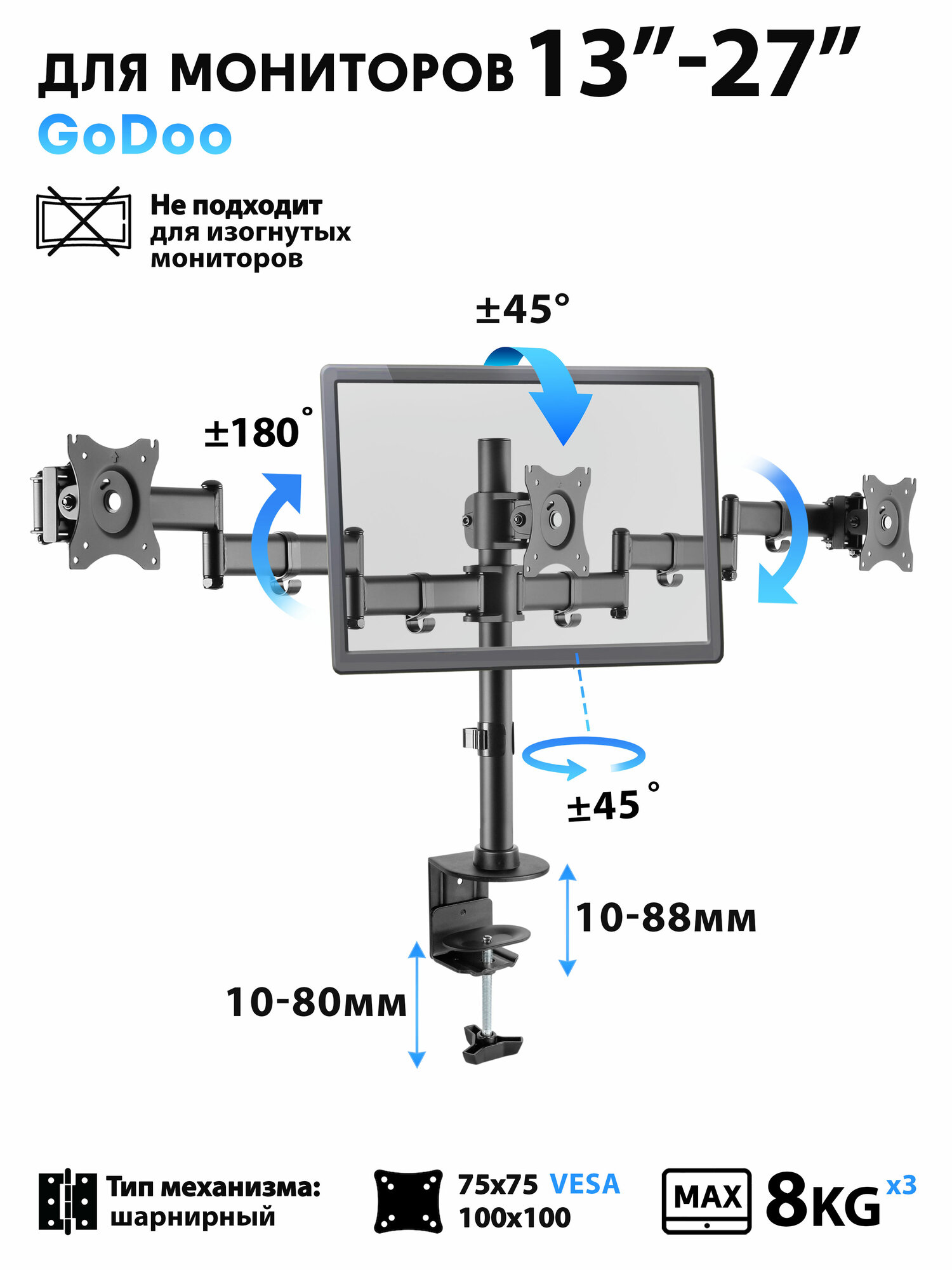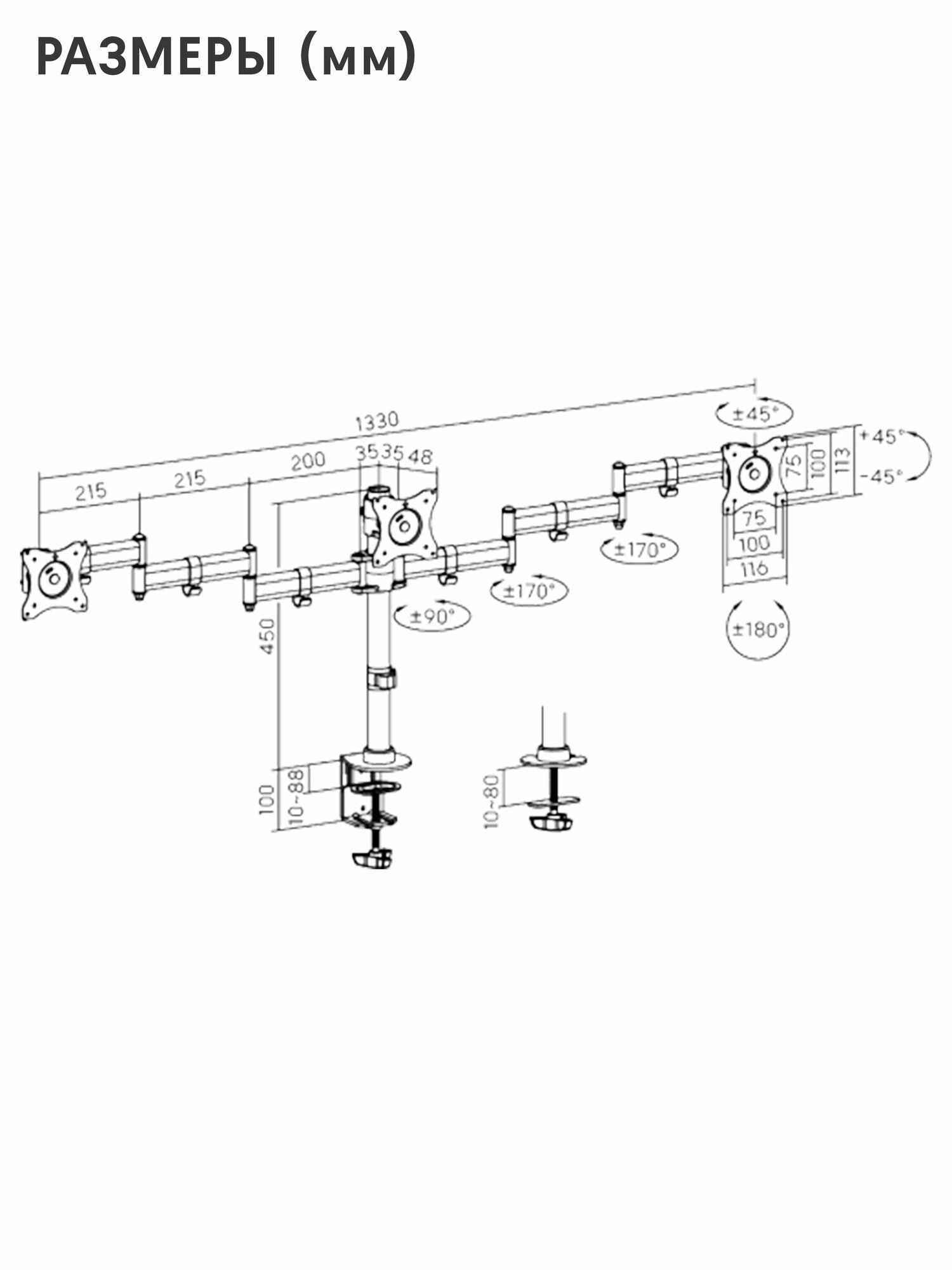 Кронштейн для трех мониторов Godoo 13"-27" дюймов GD07-C036 интересное: